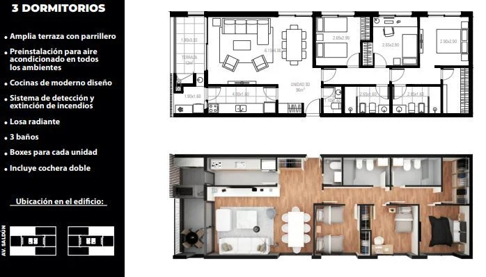 ¡ TreeHouse Bienes Raíces vende TRES DORMITORIO CARRASCO! Palo Alto consiste en cómodos y luminosos apartamentos con amplios ventanales y terrazas, afianzando el mejor vínculo con el contexto y el paisaje inmediato en el que se localiza, de manera tal que el paisaje define tu escena diaria. Las unidades de 1, 2 y 3 dormitorios cuentan con generosos metrajes y excelentes terminaciones en un acertado lenguaje contemporáneo. Palo Alto ha sido pensado con el fin de que cada momento sea especial y único. Unidad 103- Se trata de tres dormitorio con 96.00 m2 internos y 12 m2 de terraza. . Caracteristicas: GARAJE, LAVANDER?A, PLAYROOM, SEGURIDAD, SUM XINTEL (TBR-TBR-5031)