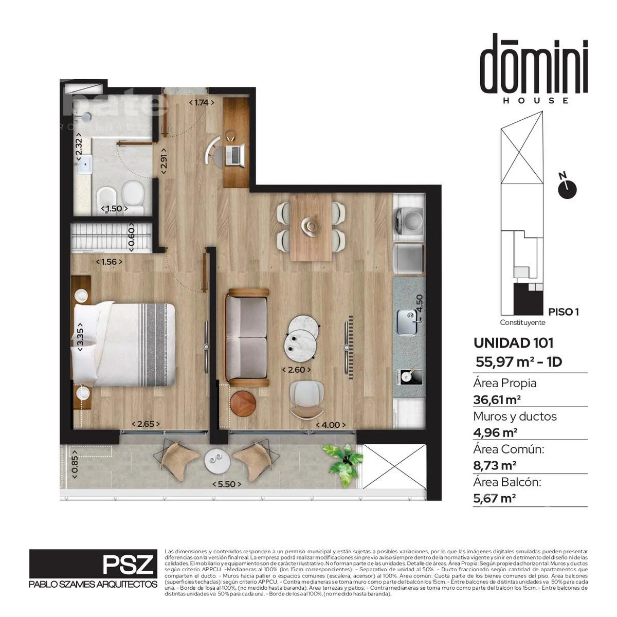 Venta Apartamento de 1 dormitorio en Cordón, en Edificio Domini House,