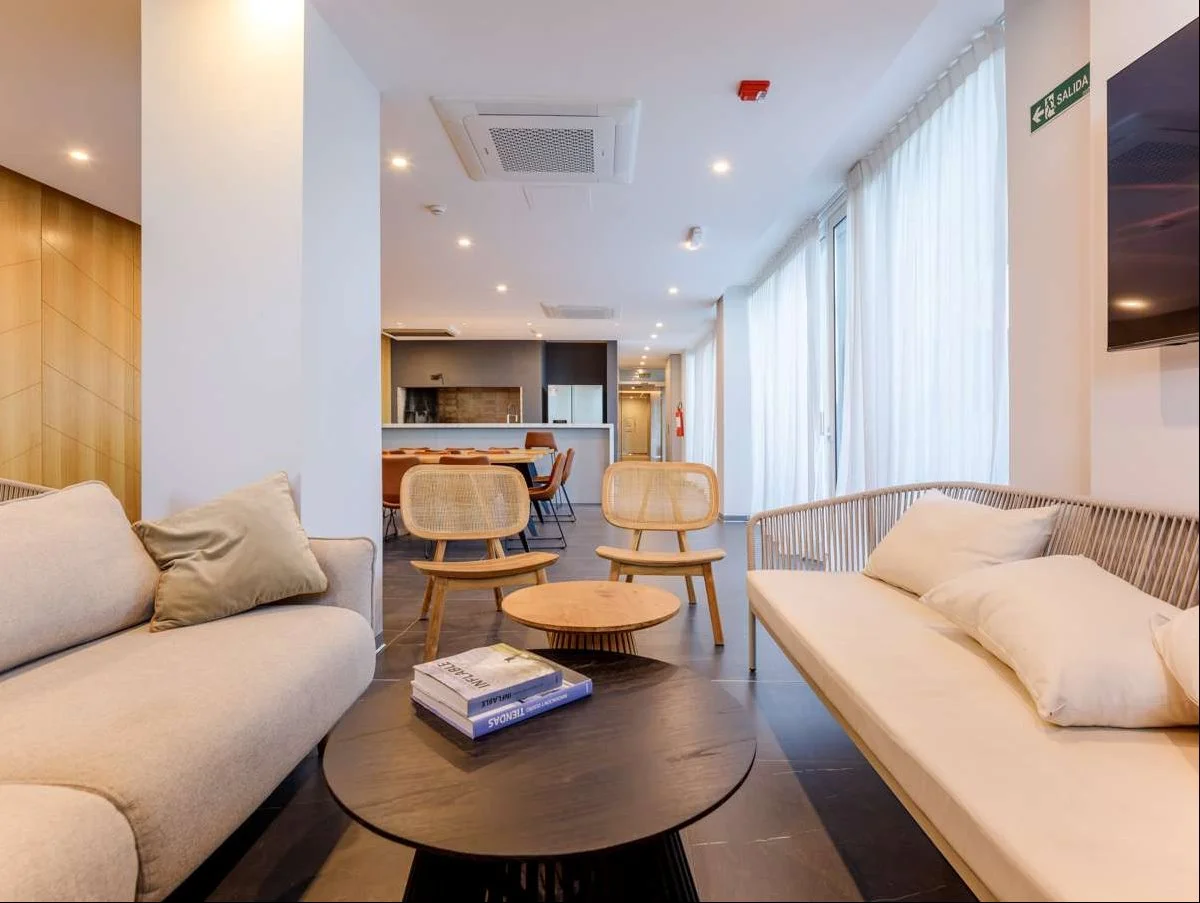 Cuenta con 23 exclusivas unidades de 1, 2, 3 y 4 dormitorios y dúplex, un área de estacionamiento, lugares con previsión para carga eléctrica, lugar de carga y descarga, además de contar con bicicleteros y boxes.