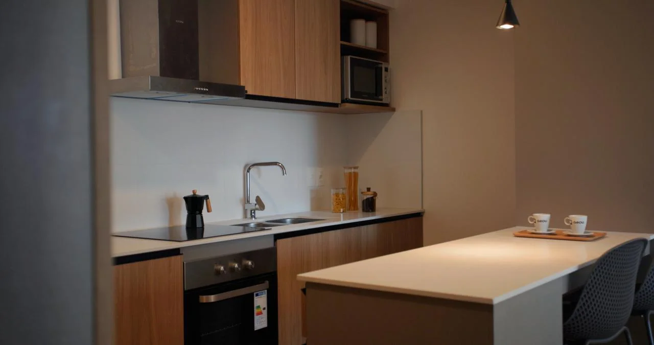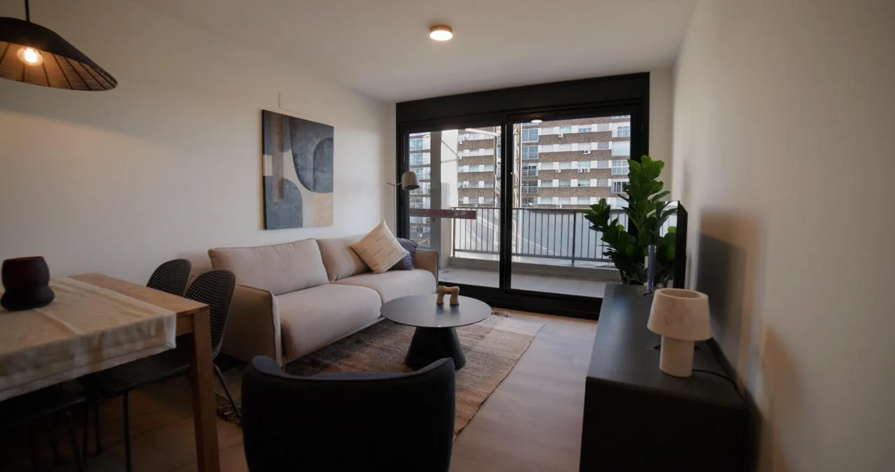 - Living Comedor con cocina Integrada, salida a Terraza.