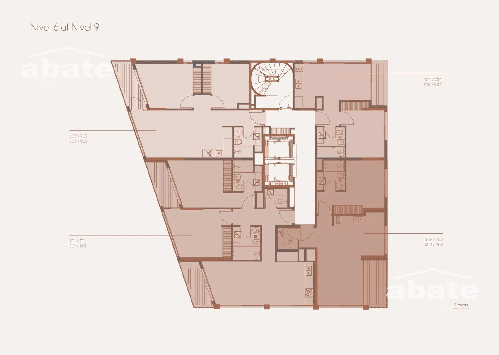 El edificio se desarrolla en 12 niveles, con 2 subsuelos de estacionamiento, locales comerciales en planta baja y espacios pensados para la vida moderna.