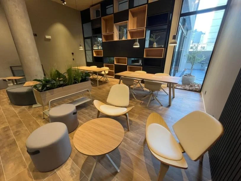 Amenities en segundo piso: gimnasio equipado, amplio co-work, parrillero exterior con patio, salón de usos múltiples.
