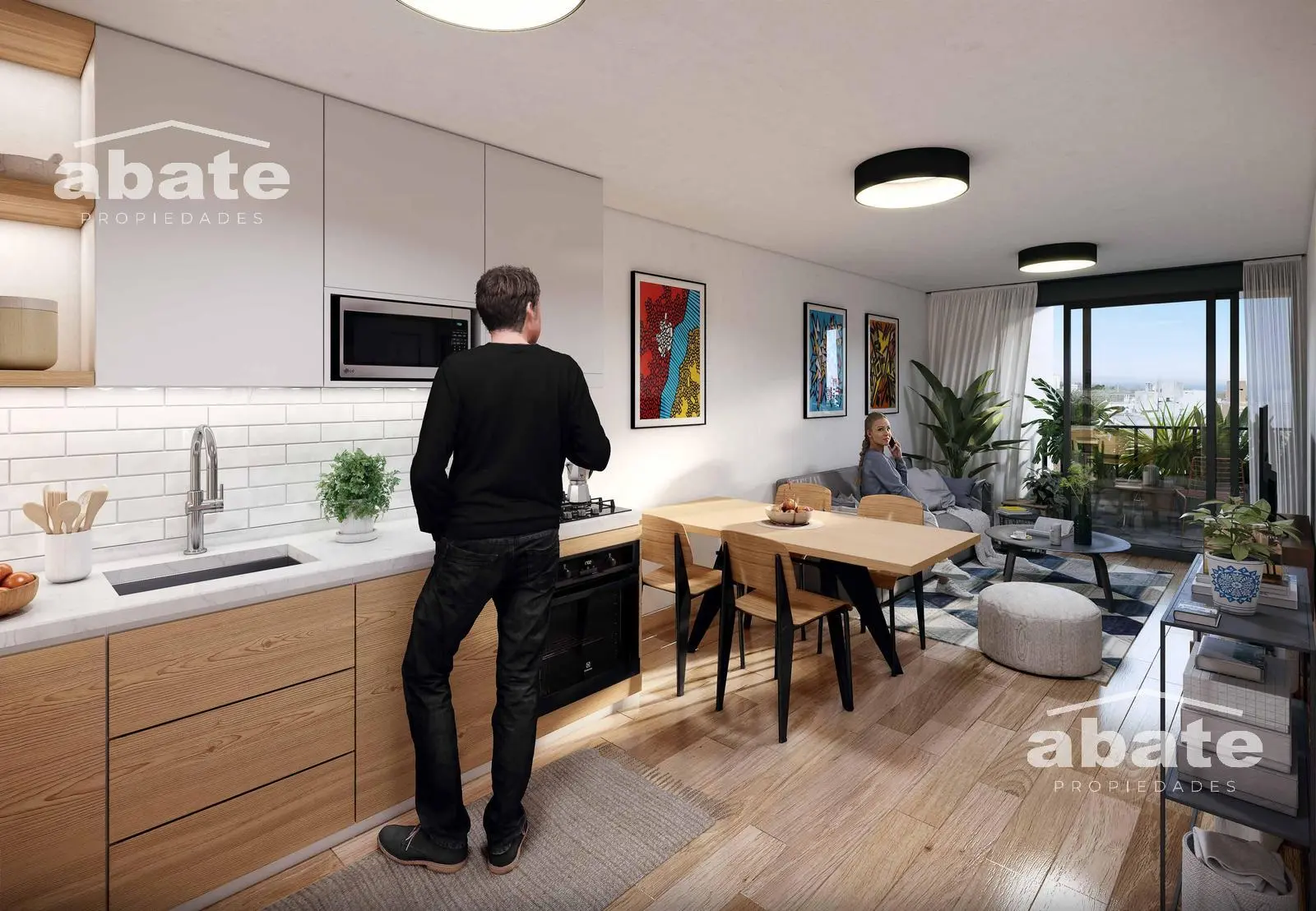 La unidad cuenta living comedor con cocina integrada con aéreos y bajo mesada. Este ambiente se extiende a una terraza con parrillero.