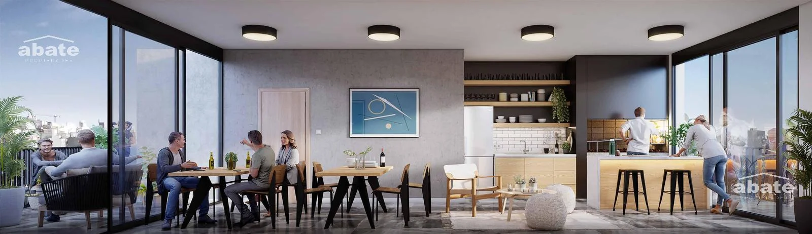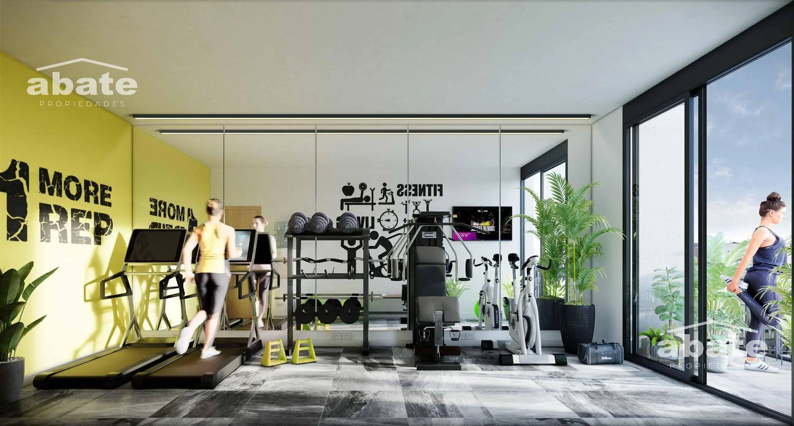 Se diseñaron espacios de amenities en piso 13 donde se encuentran la barbacoa, el gimnasio y el lavadero todos conectados por una terraza solárium. Dado que en el predio de YES 21! no es posible construir todos los garajes reglamentarios según las exigencias de normativa, este proyecto se complementa con un edifico destinado a garajes que cuenta con un total de 37 lugares de garajes distribuidos en 3 niveles y un total de 1050m2. La distancia entre ambos predios es de 250 metros.