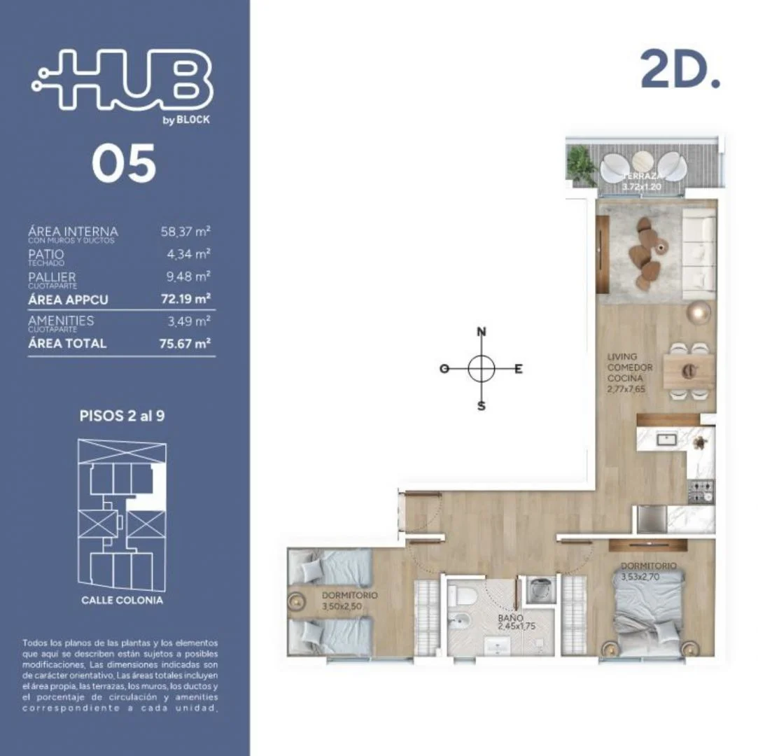 TreeHouse Bienes Raíces Vende! Apartamento de dos dormitorios en venta ubicado en Cordón. En Construcción estrena en 2027. El edificio: Hub by Block: Ubicado en Colonia esq. Dr. Martín C. Martínez, a pasos de universidades, servicios y con excelente conexión a toda la ciudad. Un punto estratégico para vivir o invertir, en una zona que crece y se valoriza día a día. El apartamento: Ubicado en piso 4 con disposición contrafrente (Unidad 405) Hall con recibidor, living comedor con salida a la terraza, cocina integrada con muebles bajo mesada y aereos, baño completo y dos dormitorios. -Incluye calefon instalado y aire acondicionado en ambientes. -Las fotos que están cargadas son a modo ilustrativo de la unidad modelo. Gastos de conexiones: 4% XINTEL (TBR-TBR-4552)