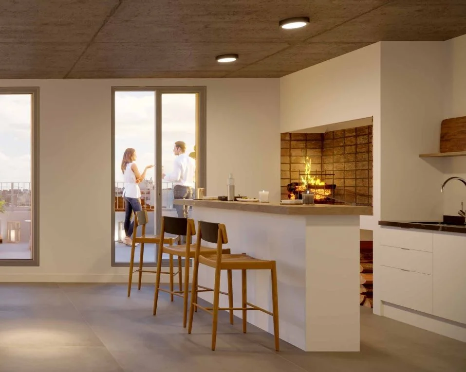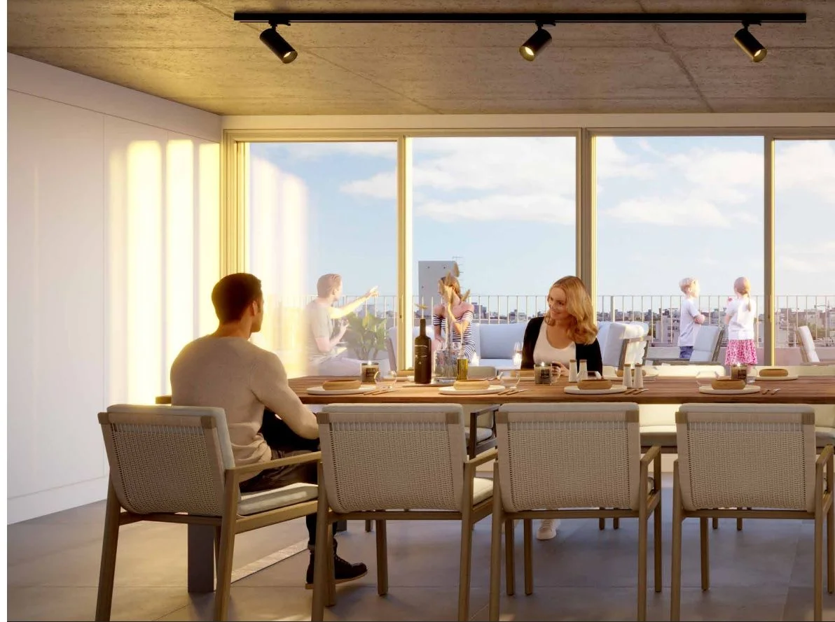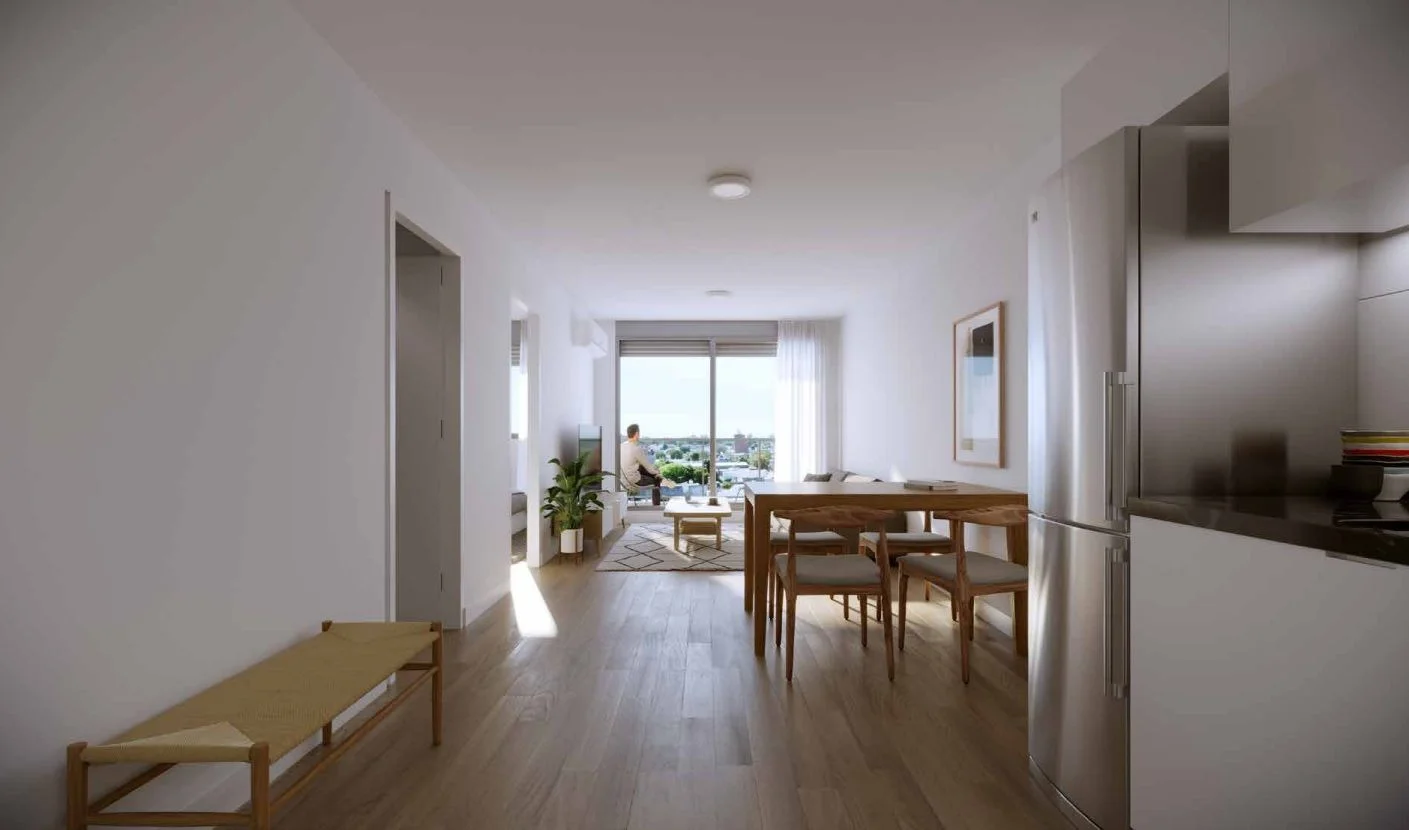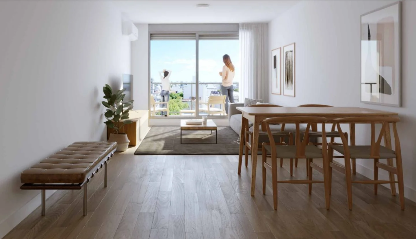 El apartamento contará con las siguientes características: placares sobre y bajo mesada en cocina, pre-instalación de aire acondicionado, aberturas de aluminio con persiana integrada, revestimiento de porcelanato en baño y cocina, pisos de vinílico símil madera y muros de mampostería tradicional tanto exteriores como interiores.