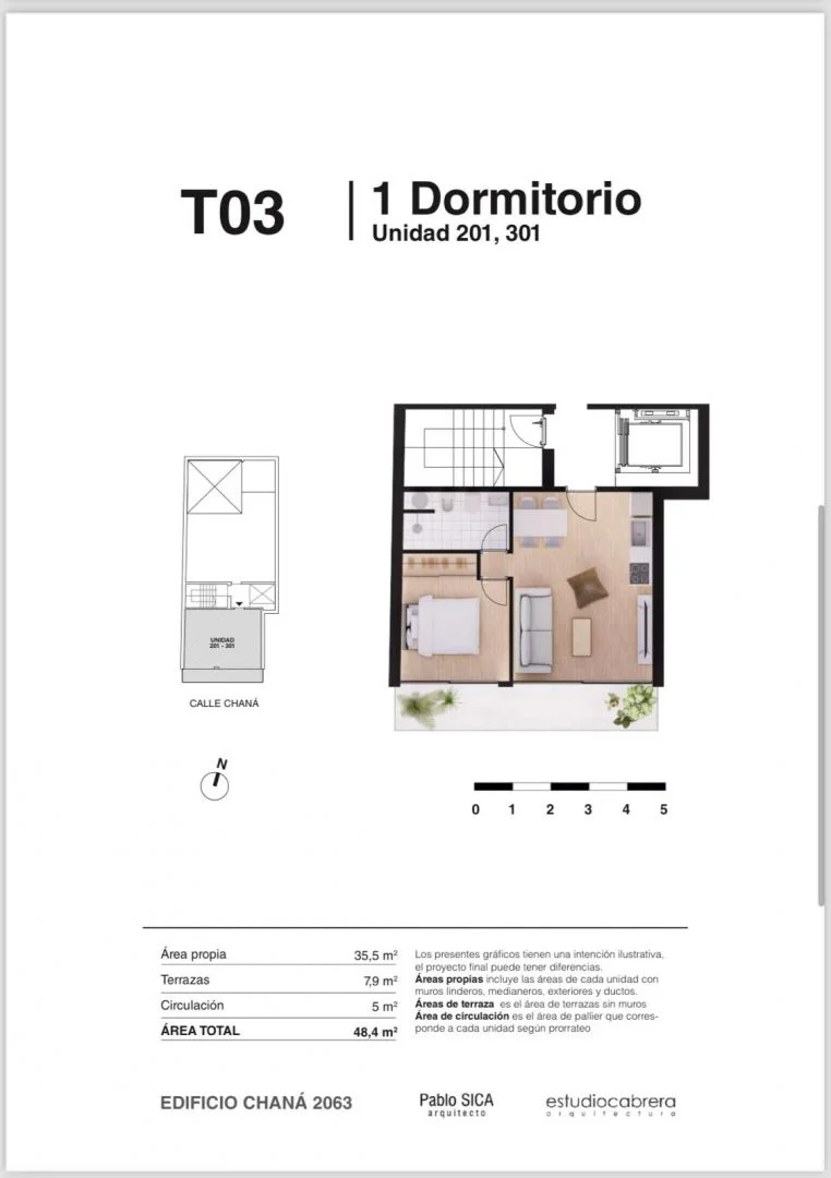 Dispone de 1 dormitorio, baño completo con mampara y terraza al frente.
