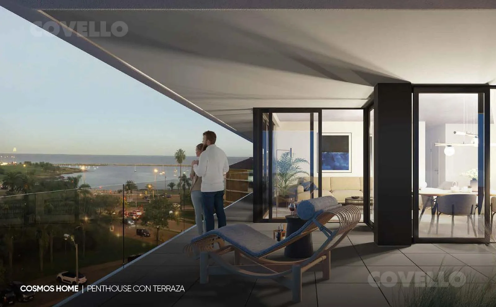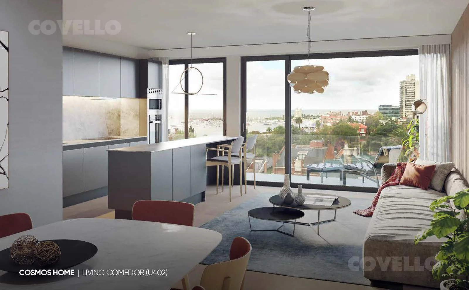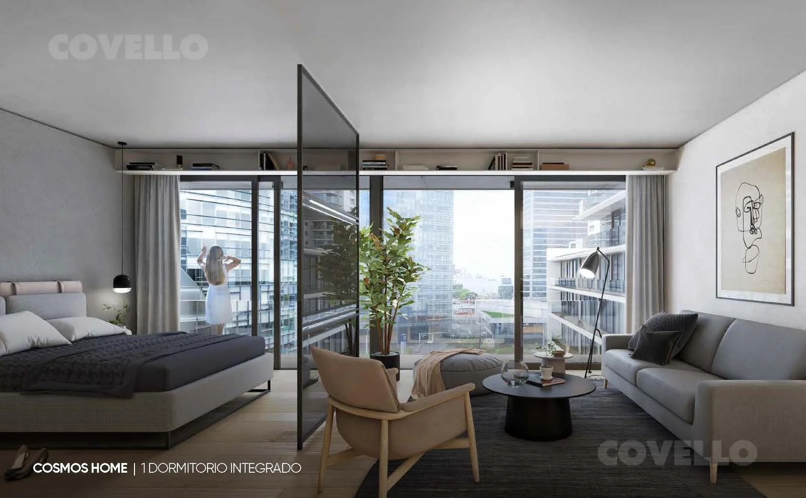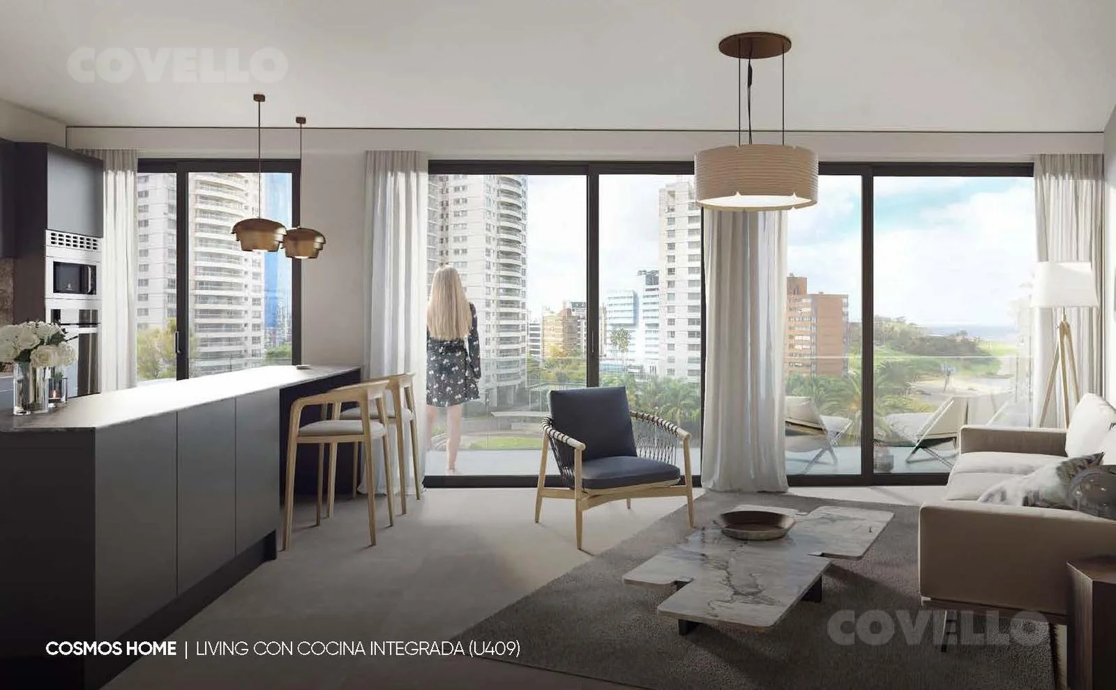 Apartamento 1 dormitorio con 1 baño , living comedor con cocina integrada , salida a terraza de plaza
