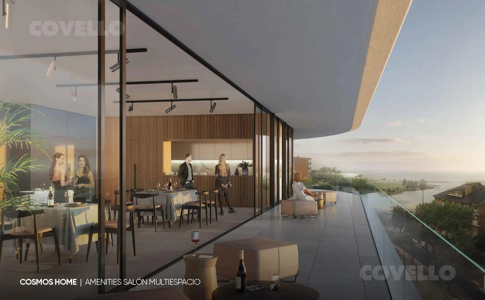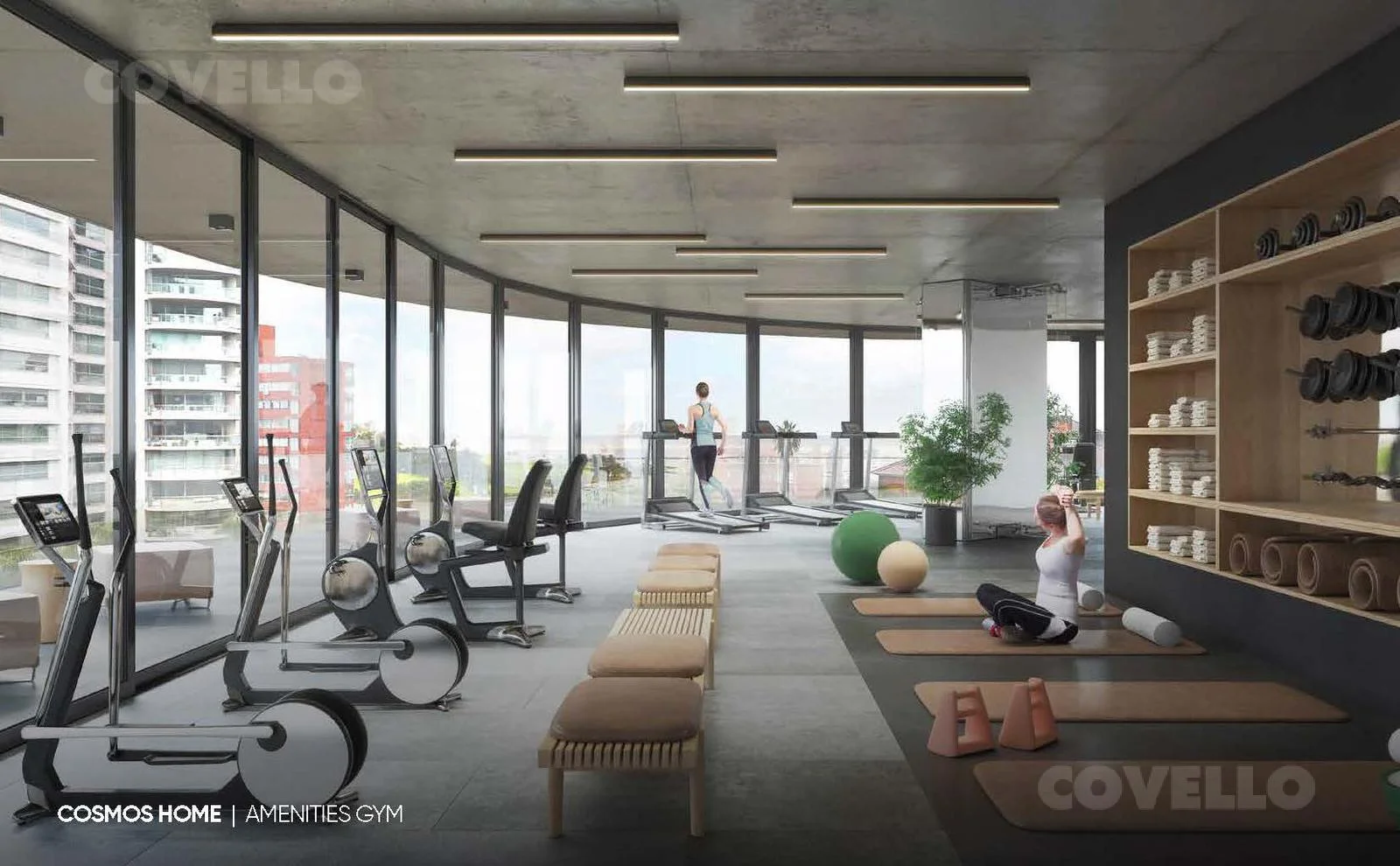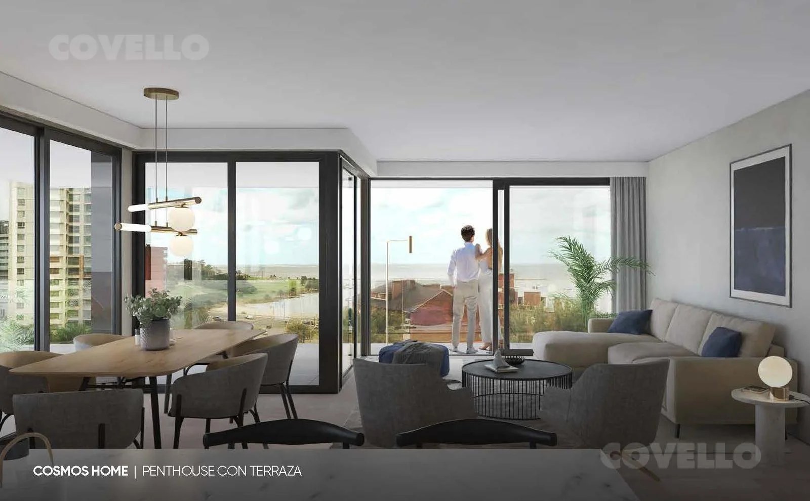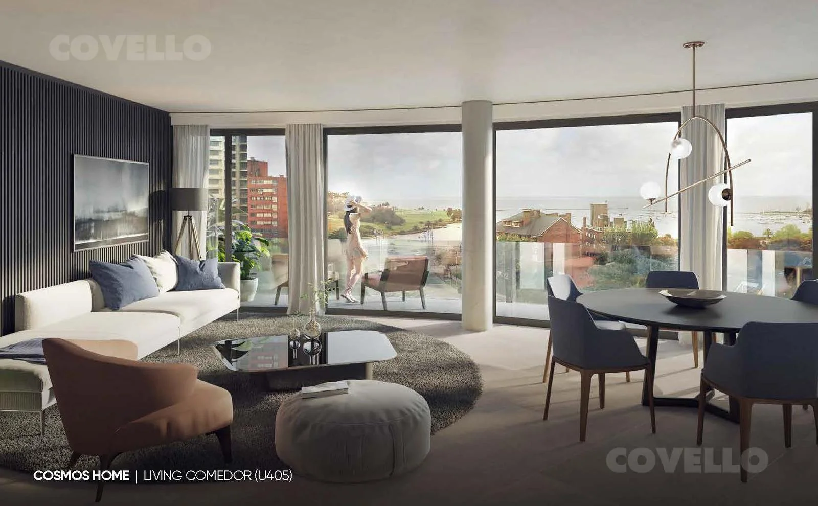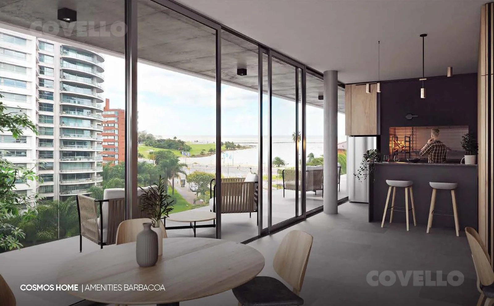 Apartamento 1 dormitorio con 1 baño , living comedor con cocina integrada , salida a terraza de plaza