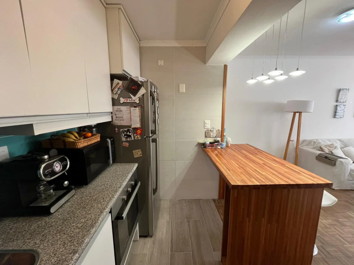 . Cocina semi integrada con placares, horno, anafe eléctrico y barra desayunadora a nueva