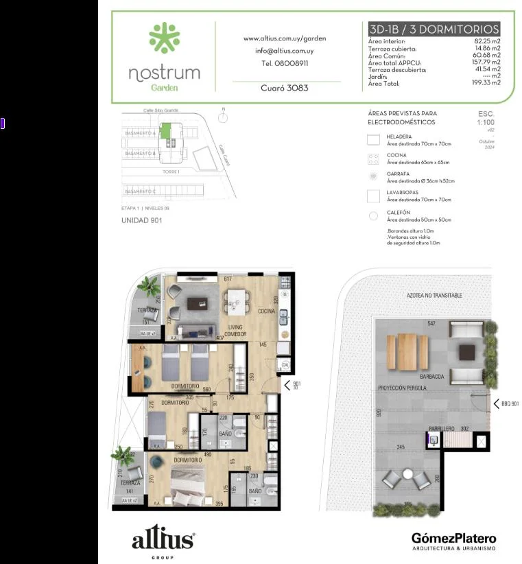Azotea de uso exclusivo con parrillero, acceso exterior.