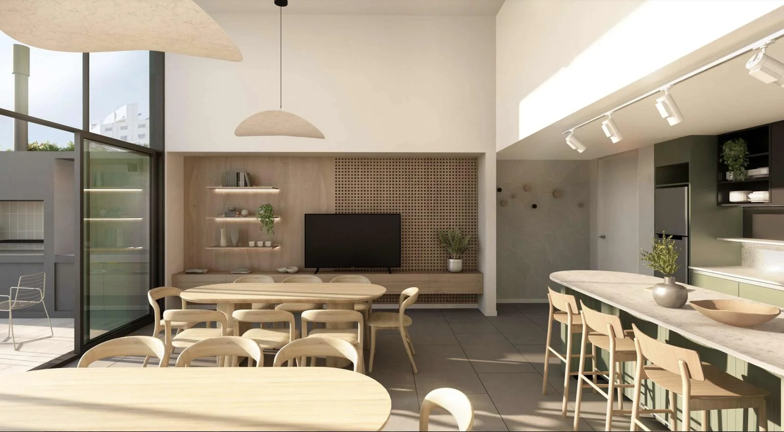 • Recorrido peatonal exterior con diseño de paisaje e iluminación decorativa.