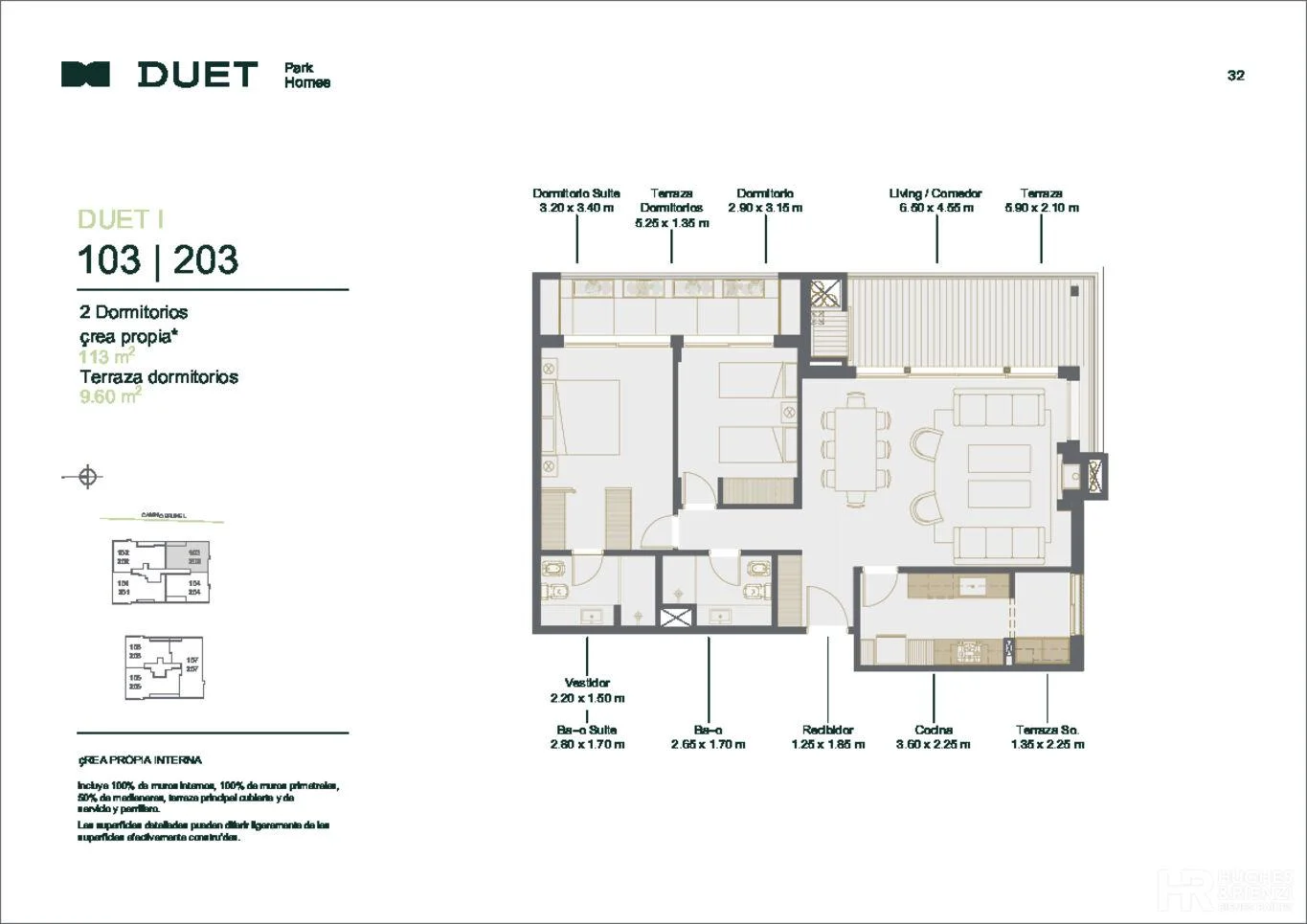 2 dormitorios y 2 baños completos, principal en suite con vestidor.