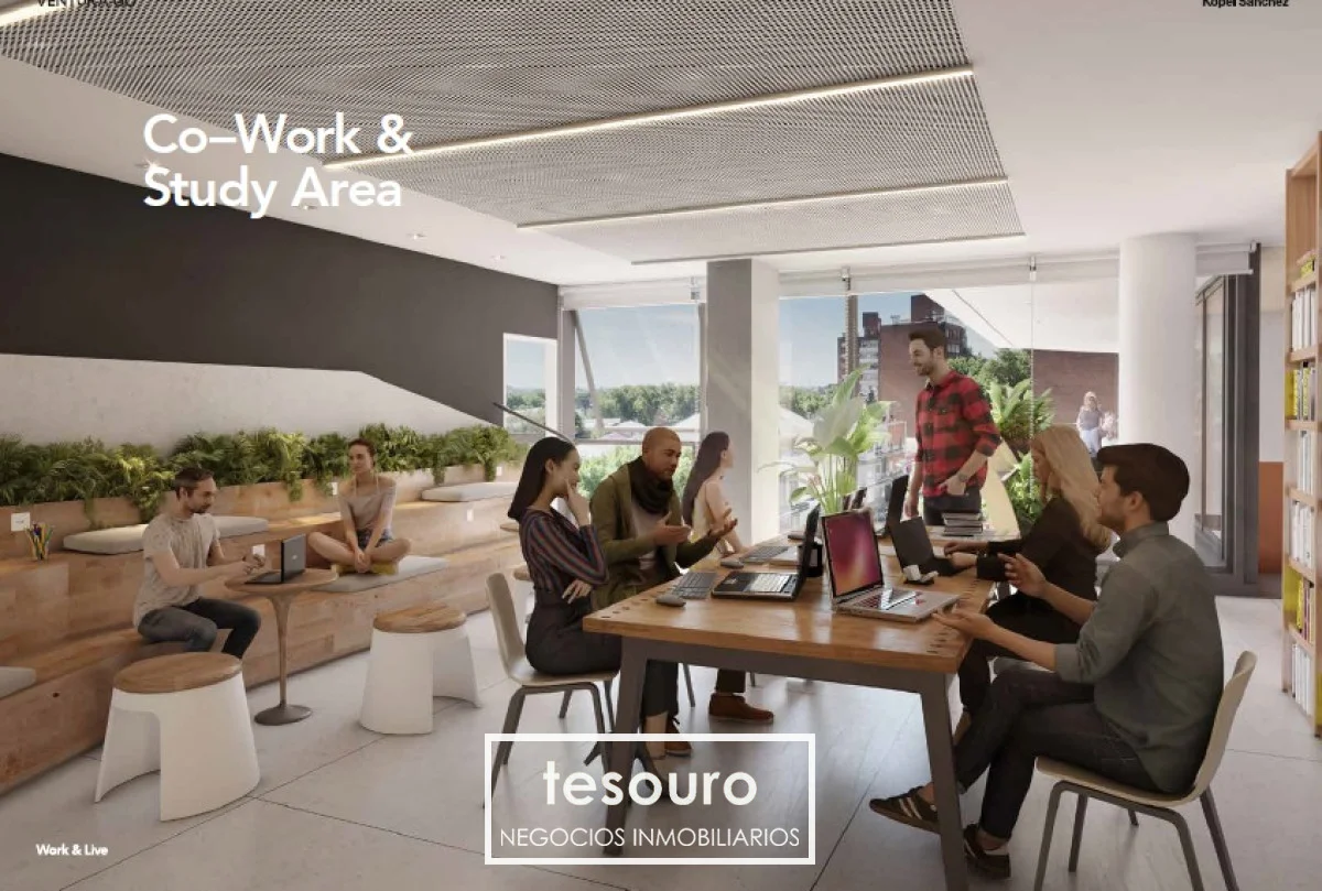 -Espacio cowork and área de estudio, con salones de reuniones, livings y escritorios
