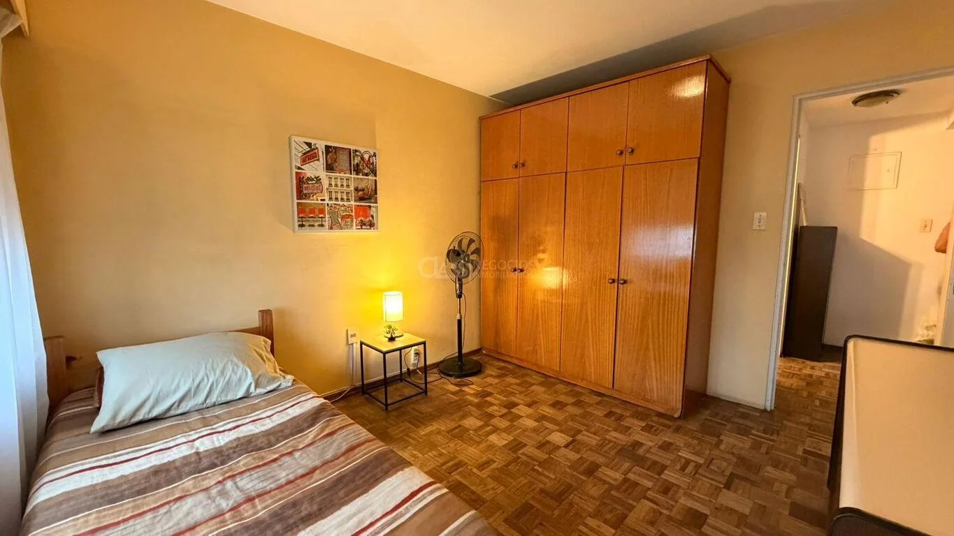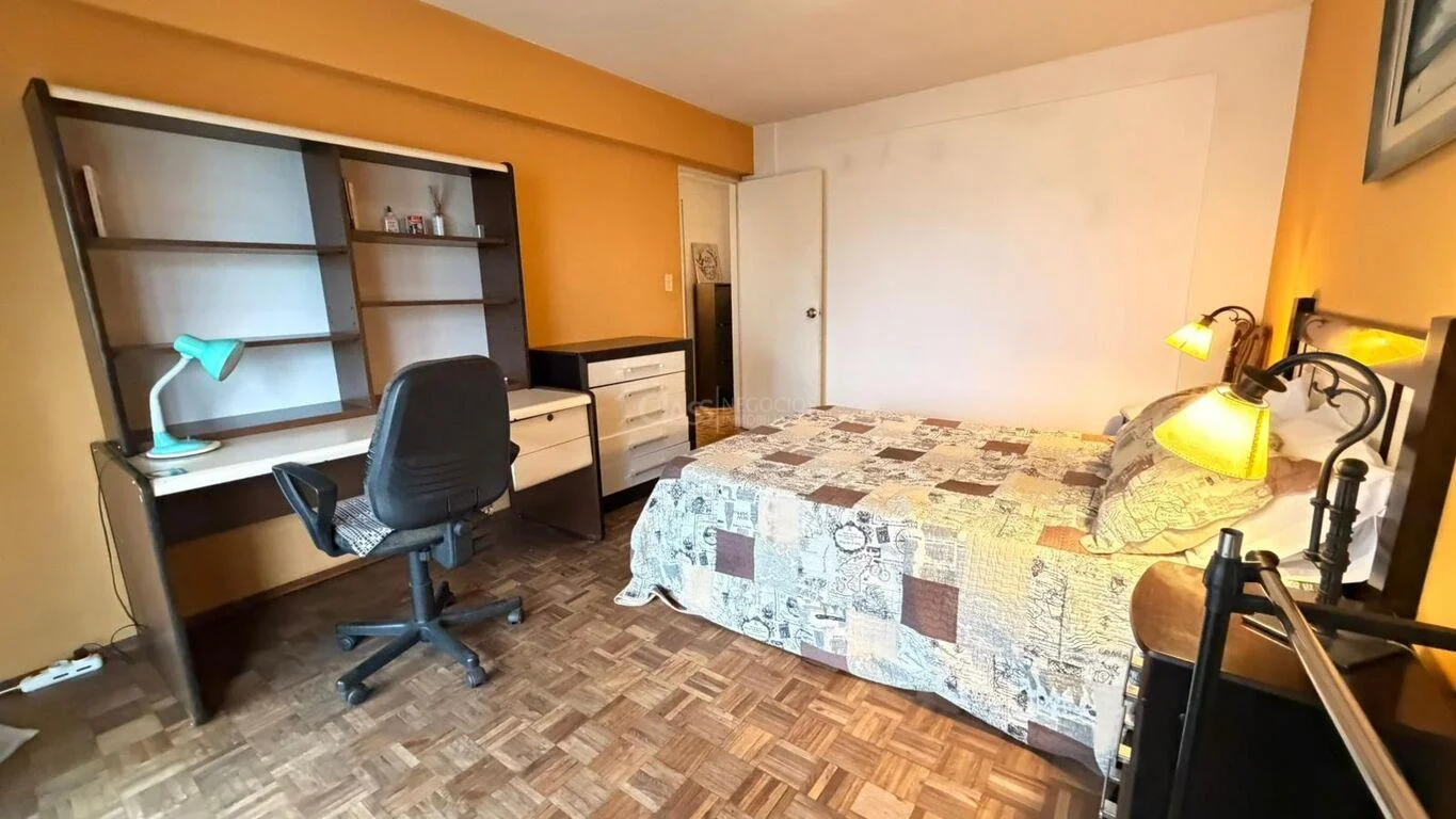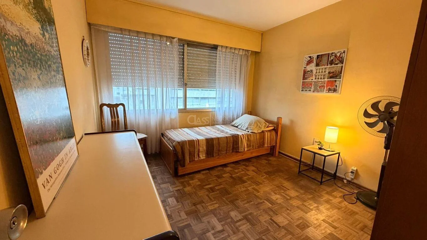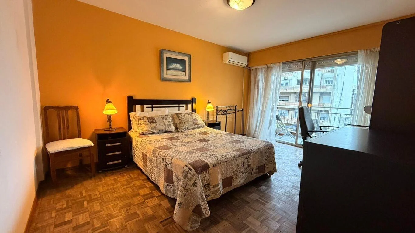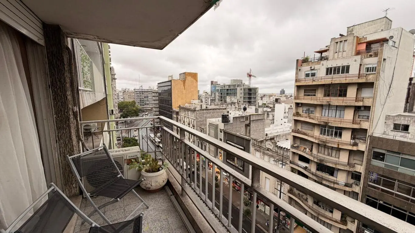 Los dos dormitorios dan al frente con vista hacia 18 de Julio, uno de ellos con salida a balcón mediante puerta ventana.
