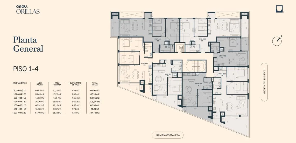 - Living Comedor con salida a Terraza (Parrillero) - Cocina Integrada (salida a Terraza Lavadero) - 2 Dormitorios - Baño Completo - Garaje Opcional a partir de USD: 18.000