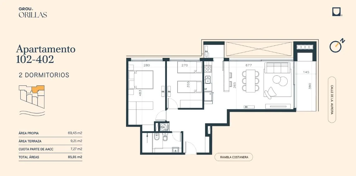 Venta Apartamento 2 Dormitorios en Rambla Costanera