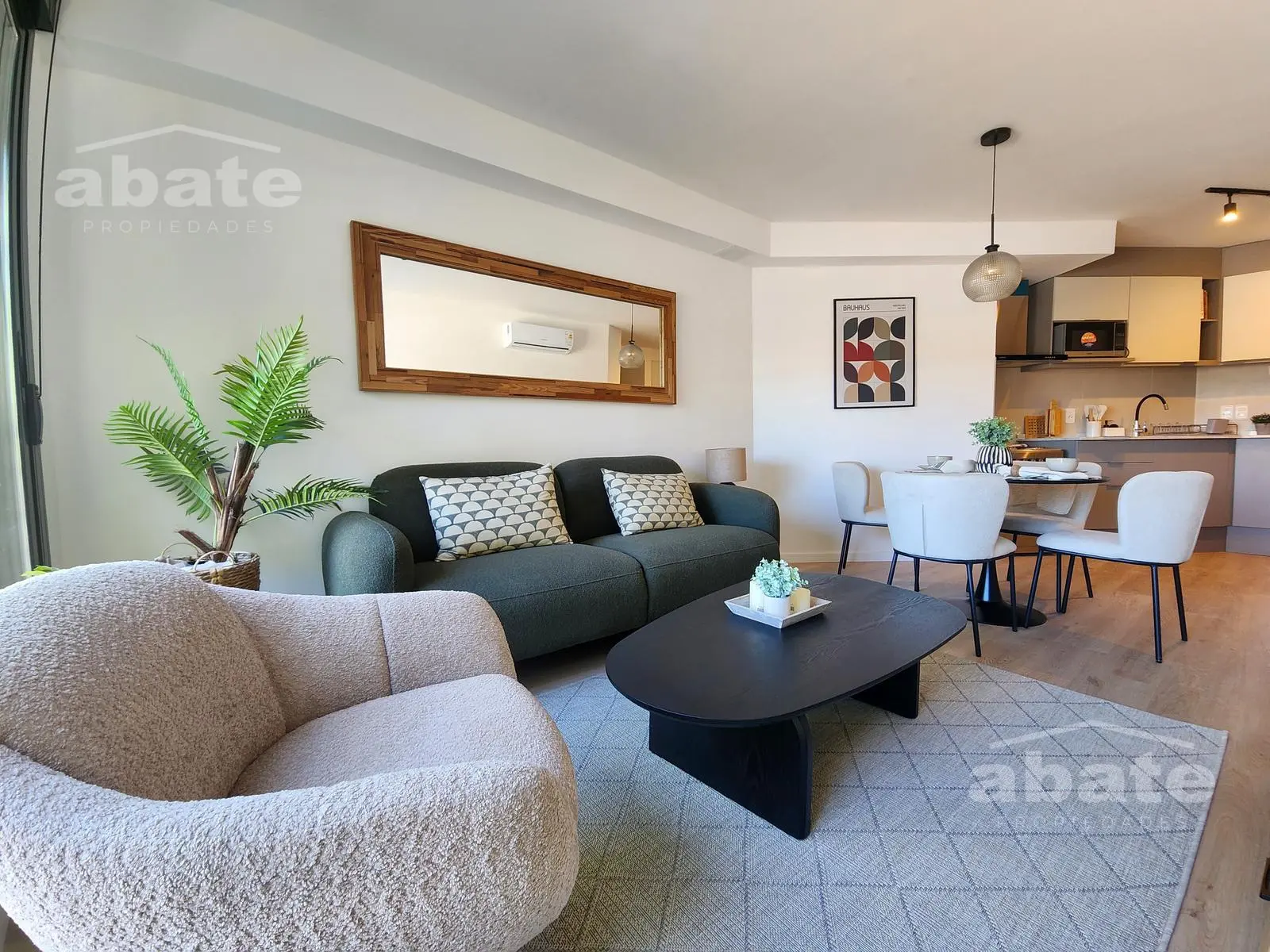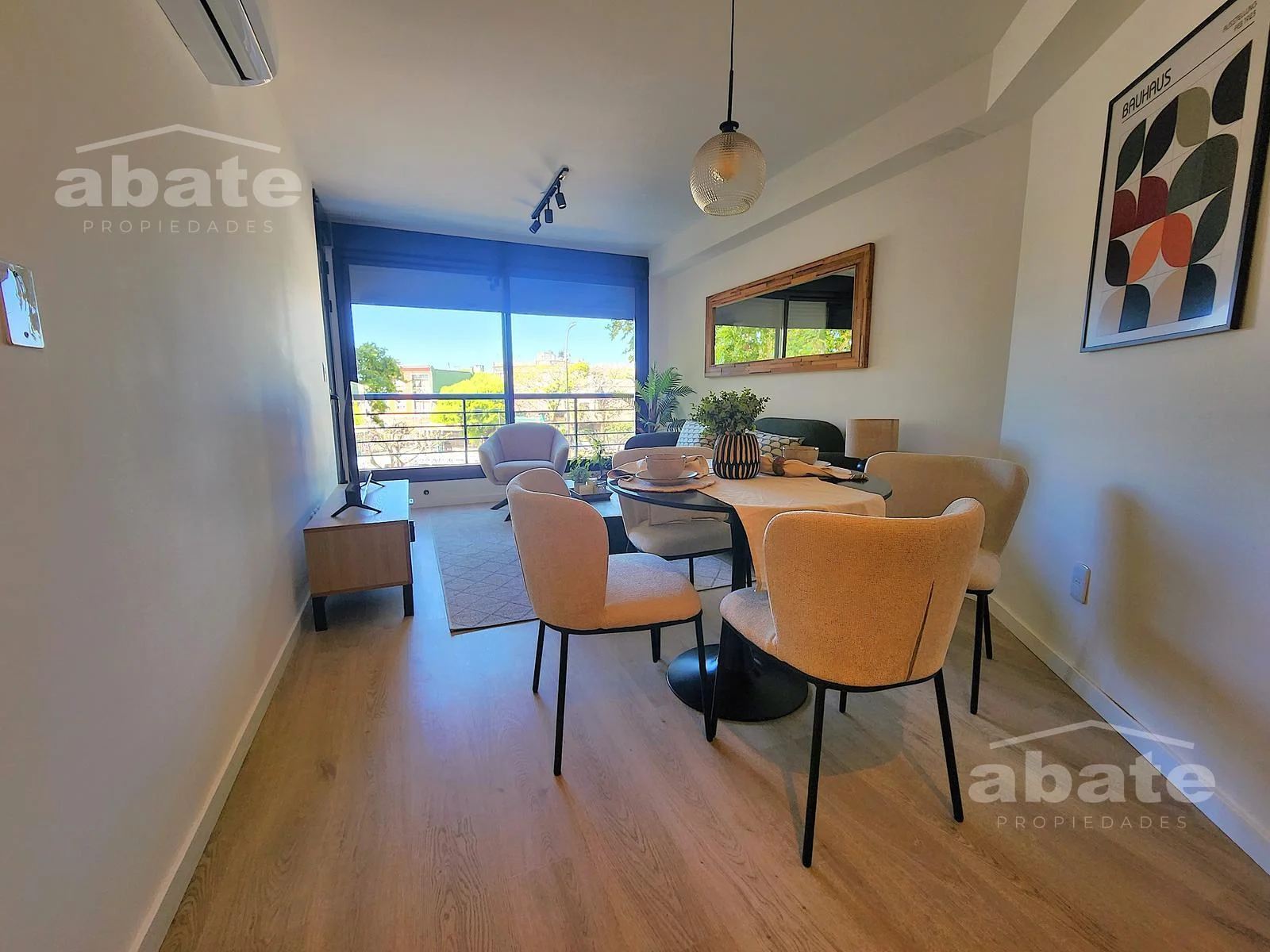 El living comedor con aire acondicionado cuenta con acceso a una terraza al frente, ofreciendo un espacio al aire libre.