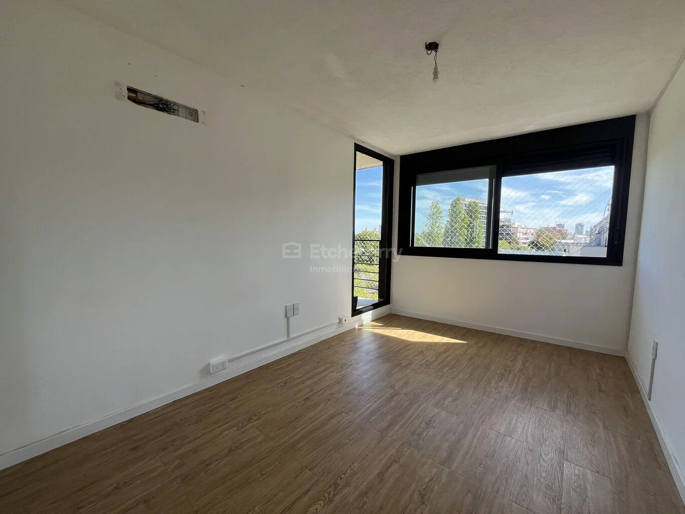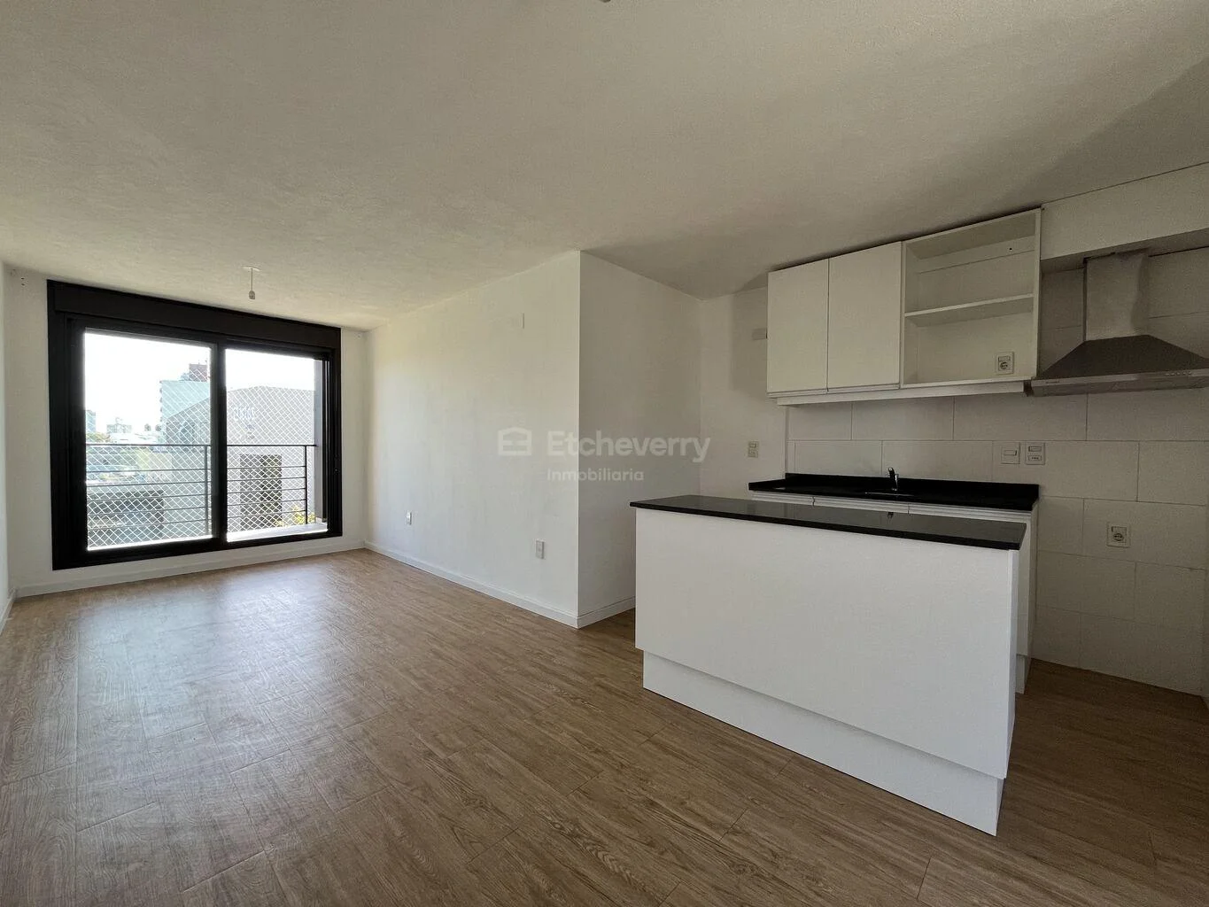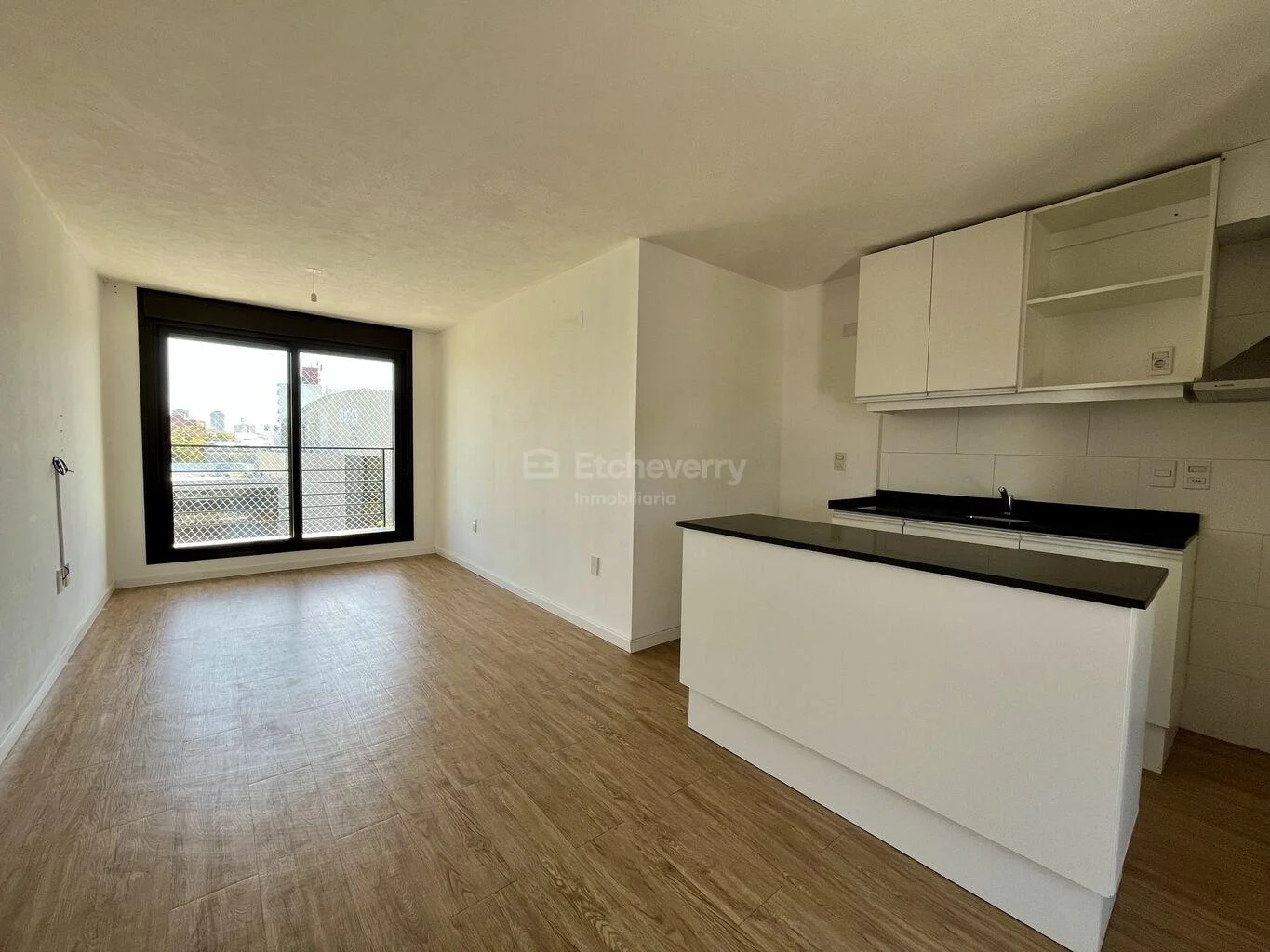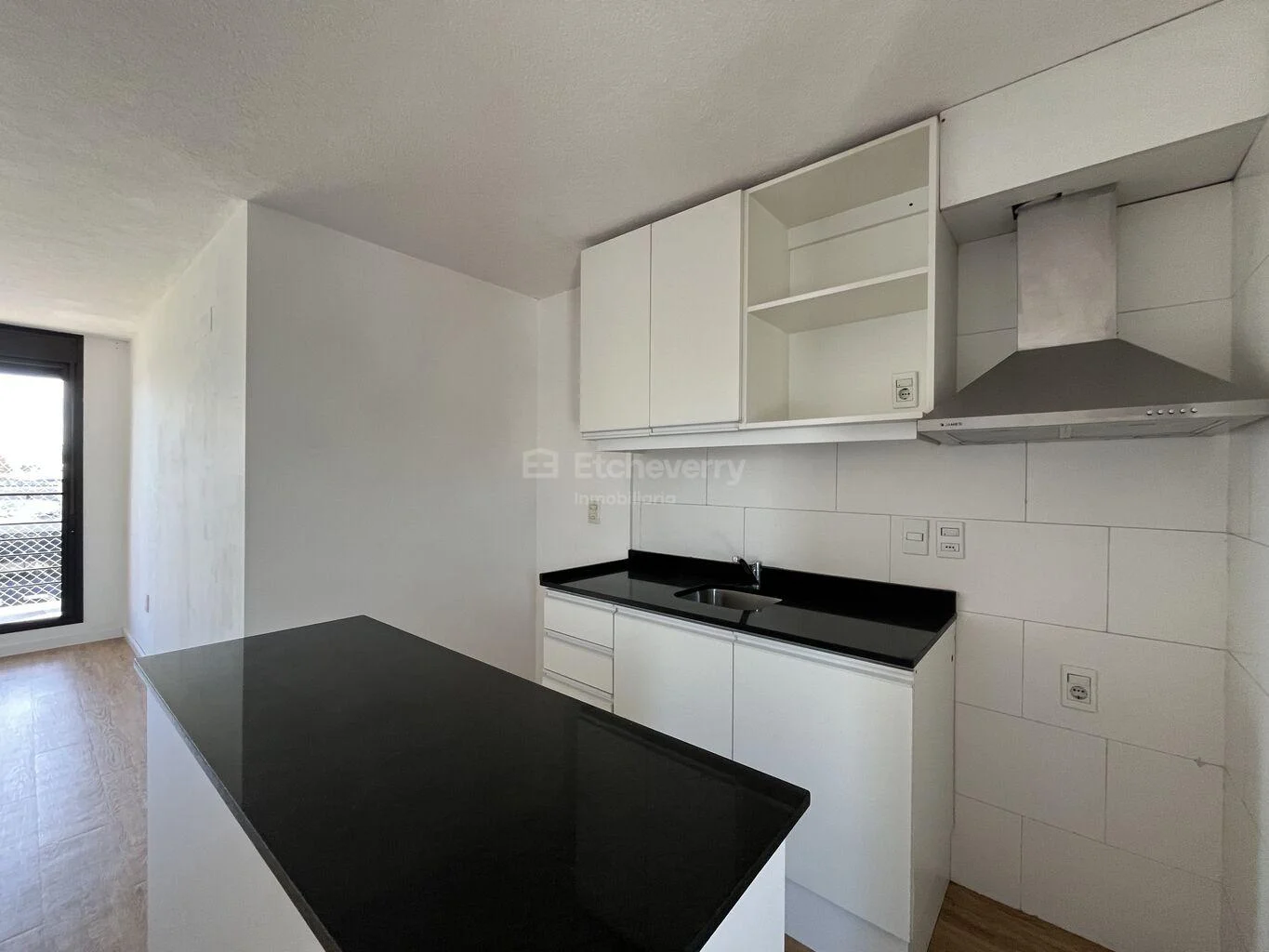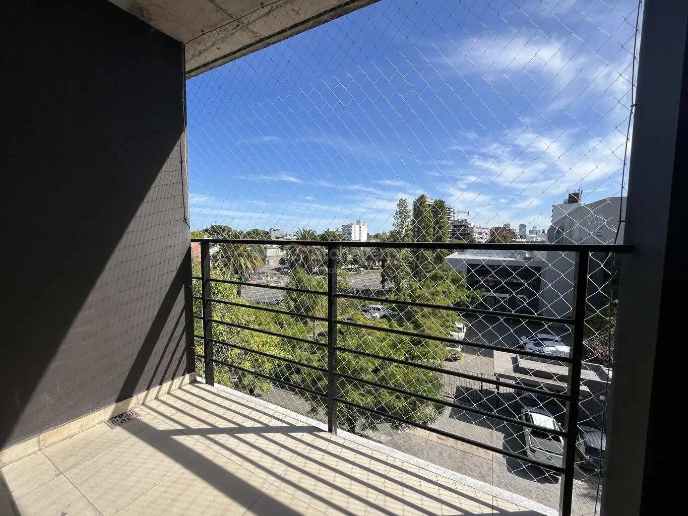 Tiene living- comedor con salida a una terraza súper soleada con vista despejada, cocina integrada, 2 dormitorios, el principal también con salida a la terraza, 1 baño completo con espacio para lavarropas, un placar adicional en el corredor y garage compartido con otra unidad (uno detrás del otro).