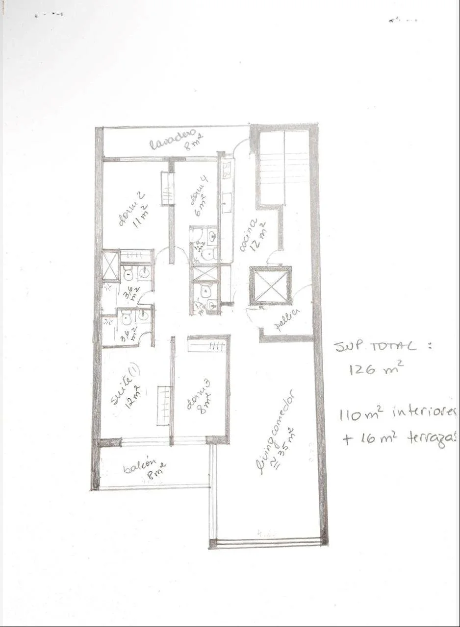 Comodidades: amplio living comedor con ventanales esquinados y salida a generosa terraza (la propietaria la cerró pero se puede volver a abrir). Baño social. Espaciosa cocina llena de placares con salida a amplísima terraza lavadero. 4 dormitorios con placares (uno de ellos en suite) y otros 2 baños completos.