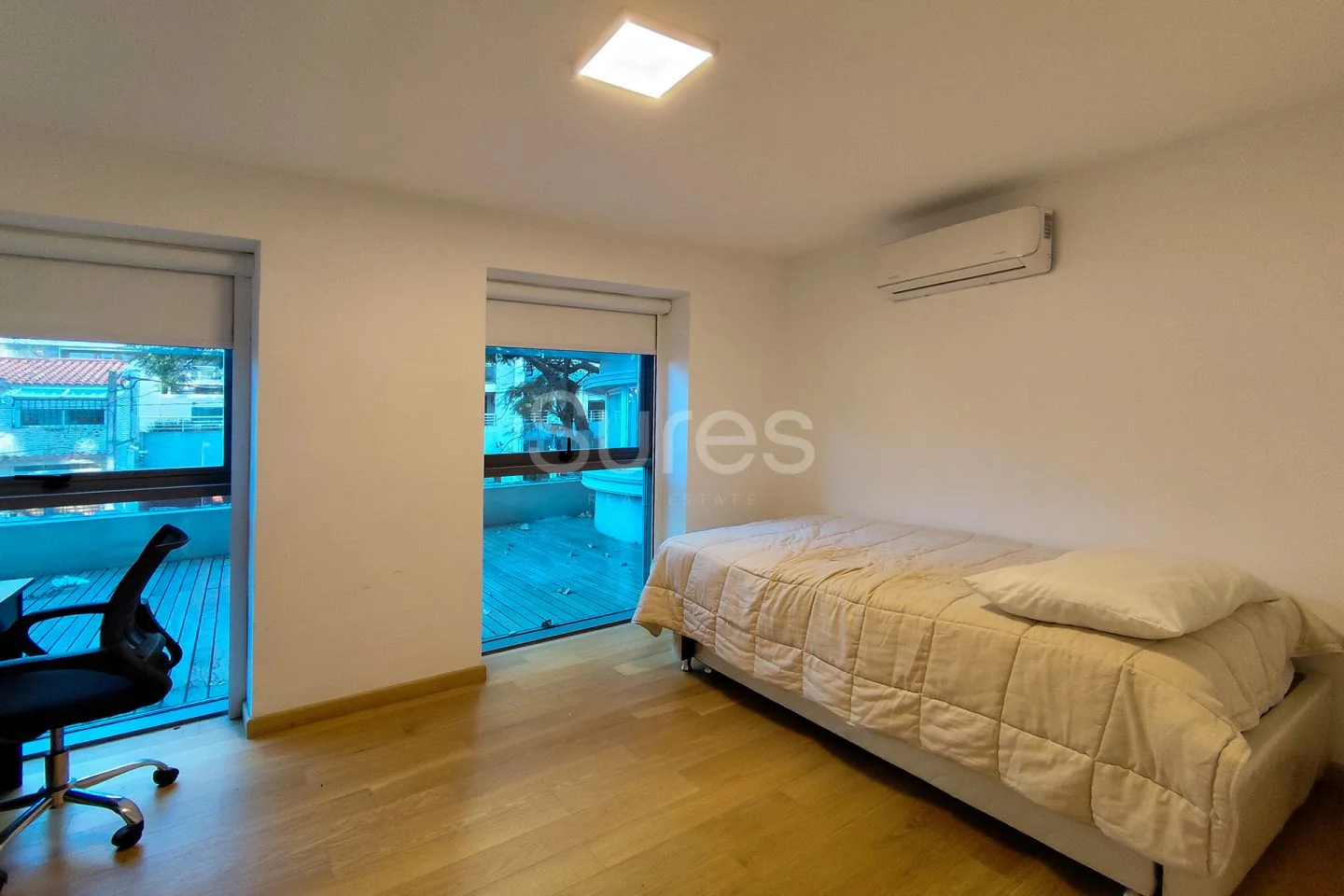 Cada ambiente dispone de aire acondicionado, garantizando comodidad durante todo el año. Losa radiante eléctrica con control individual por ambiente.