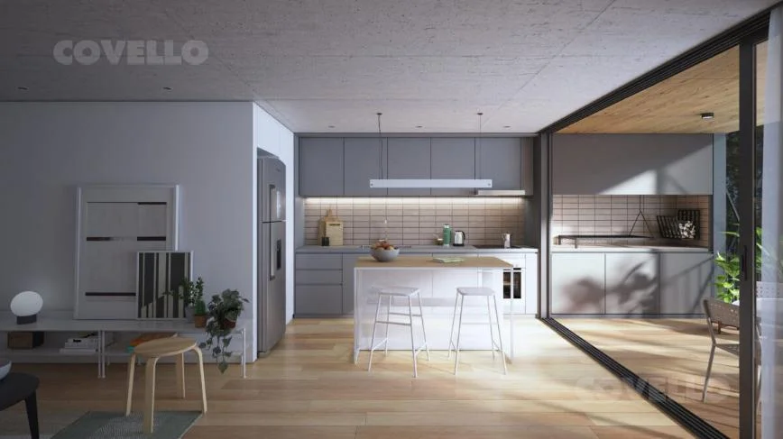 Segundo piso al contrafrente, orientación Oeste. Calidad en diseño y construcción, cuenta con parrillero propio, living con cocina integrada, 2 dormitorios y 1 baño.