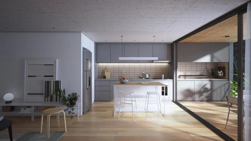 Las unidades contarán con aberturas de aluminio, muebles bajo-mesada y alacena, anafe y espacio para colocación de horno empotrado. Además de instalación para aire acondicionado y lavarropas.
