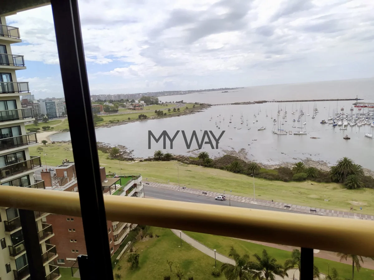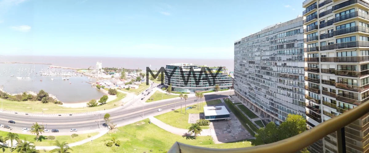 En el centro financiero y frente a la Rambla. Zona de bancos, restaurantes y shopping. Uno de lo lugares más hermosos de la rambla Montevideana.