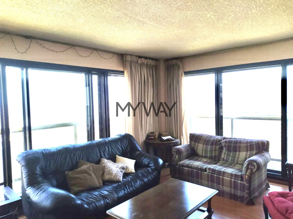 Amplio living comedor con espectacular vista hacia el Puertito del Buceo.