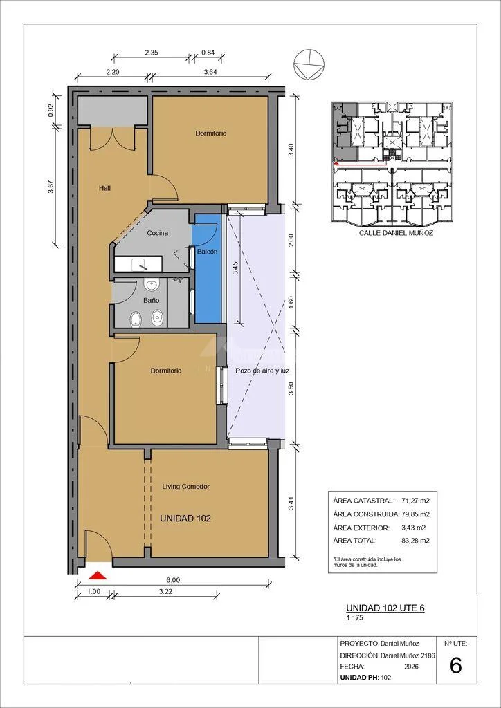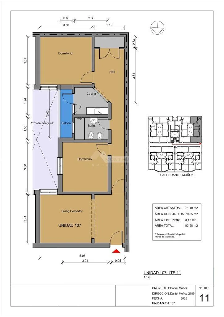 107 a 207) 79,85m2 área propia + 3,43m2 Balcón = 83,28m2 Totales.