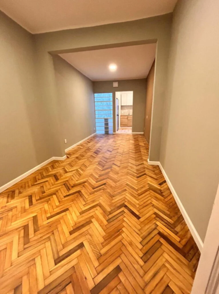 Metraje de 55 m2. Orientación Este y Oeste, recibe sol por ambos lados. Amplio living comedor cálidamente pintado. Pisos de parquet de madera pinotea originales.