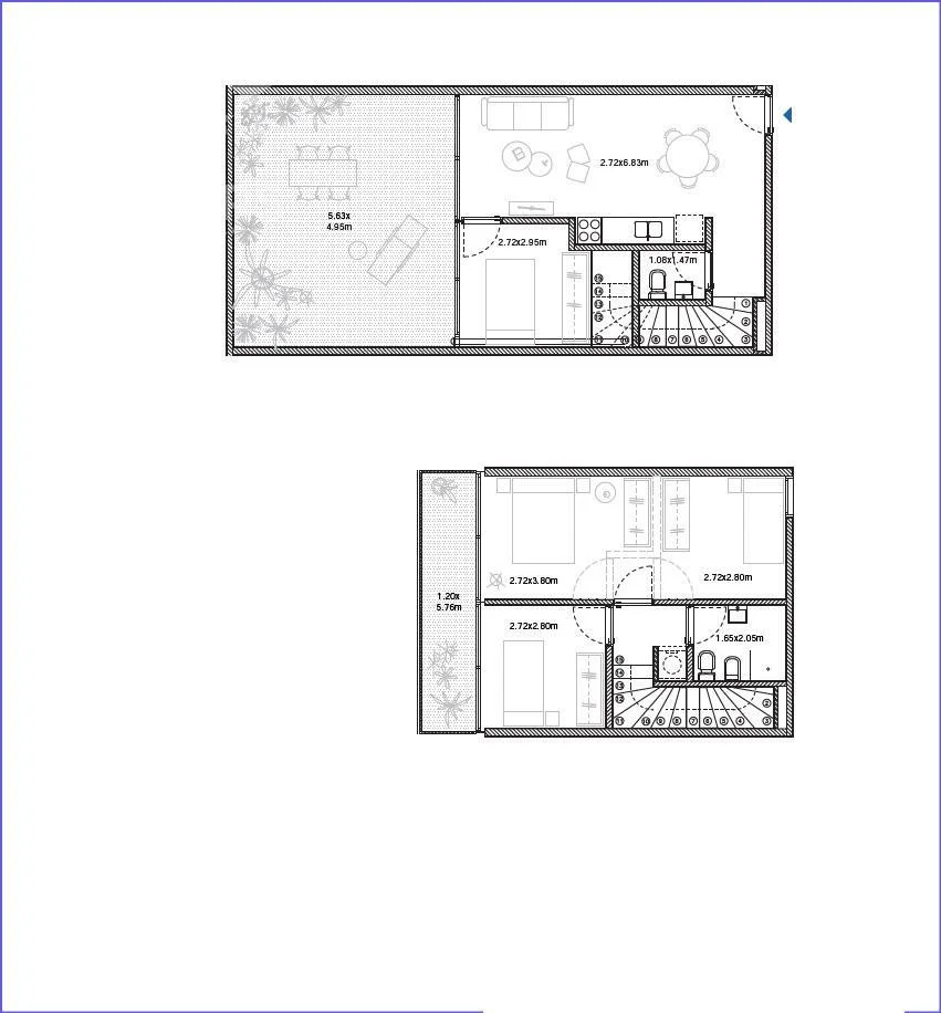 Planta baja: Living comedor con terraza de 22 m2, cocina integrada, escritorio y 1 baño social.