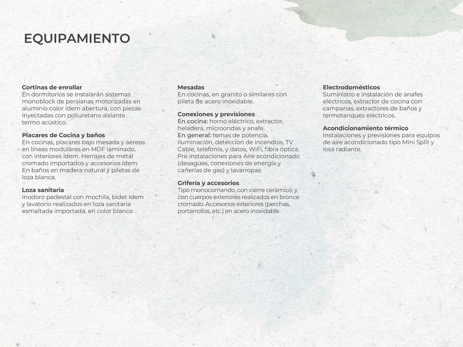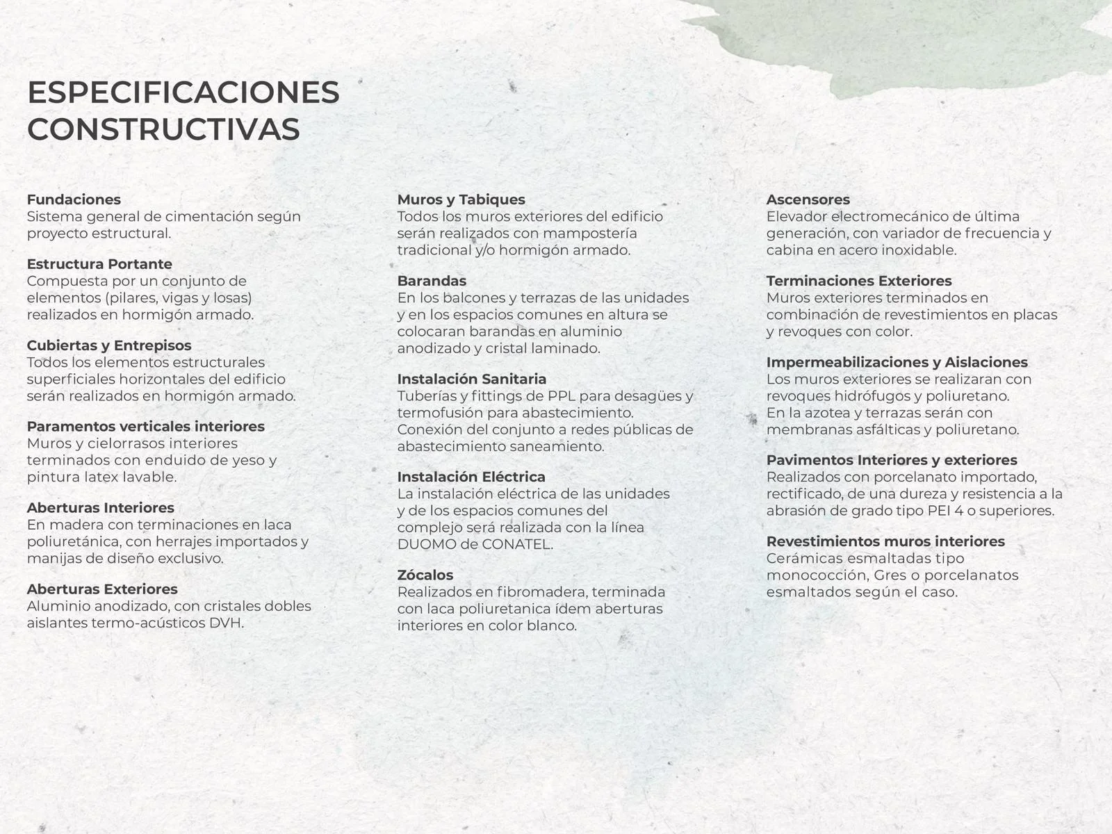 Construcción con aislamiento termoacústico (DVH) y carpinterías de aluminio anodizado lo que provee confort térmico y silencio.Terminaciones interiores en laca poliuretánica y zócalos en fibromadera, estética moderna y de fácil mantenimiento.
