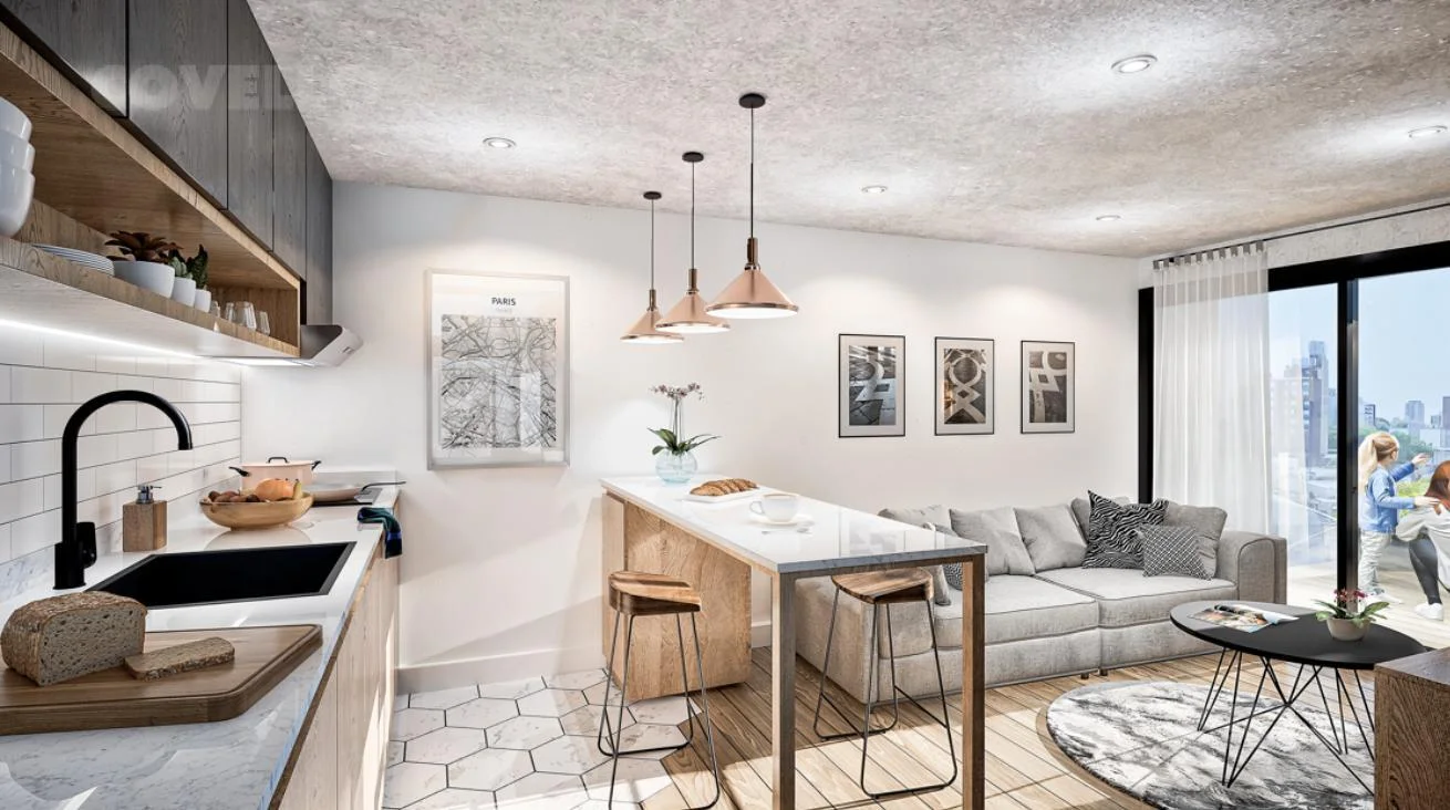 La unidad cuenta con cocina integrada con muebles bajo y sobre mesada, espacio para living-comedor, dormitorio y baño completo. Su disposición esquinada asegura mayor luminosidad y ventilación natural, aprovechando al máximo cada metro del apartamento.