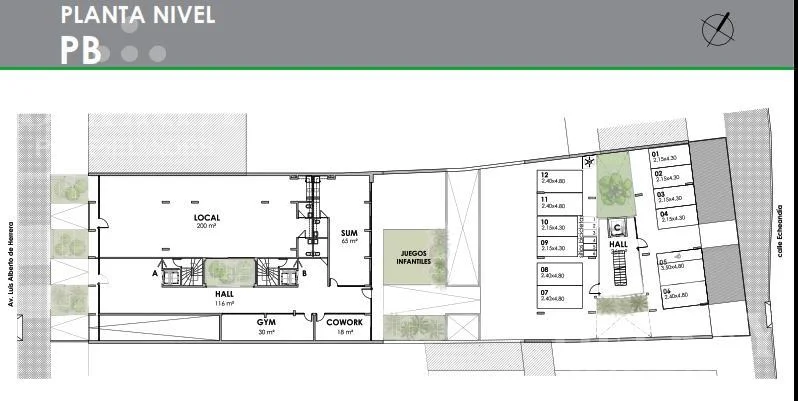 Conformado por apartamentos y áreas comunes para vivir y trabajar.