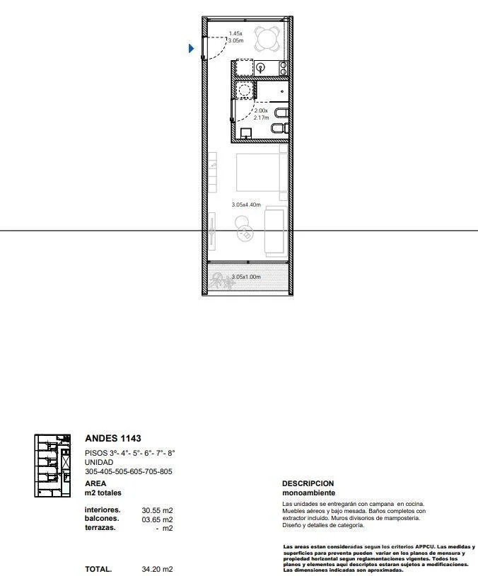 Moderno monoambiente de 30,5 m² interiores con terraza de 3,65 m², ubicado en el innovador edificio Près Mauá, en pleno eje costero de Montevideo.