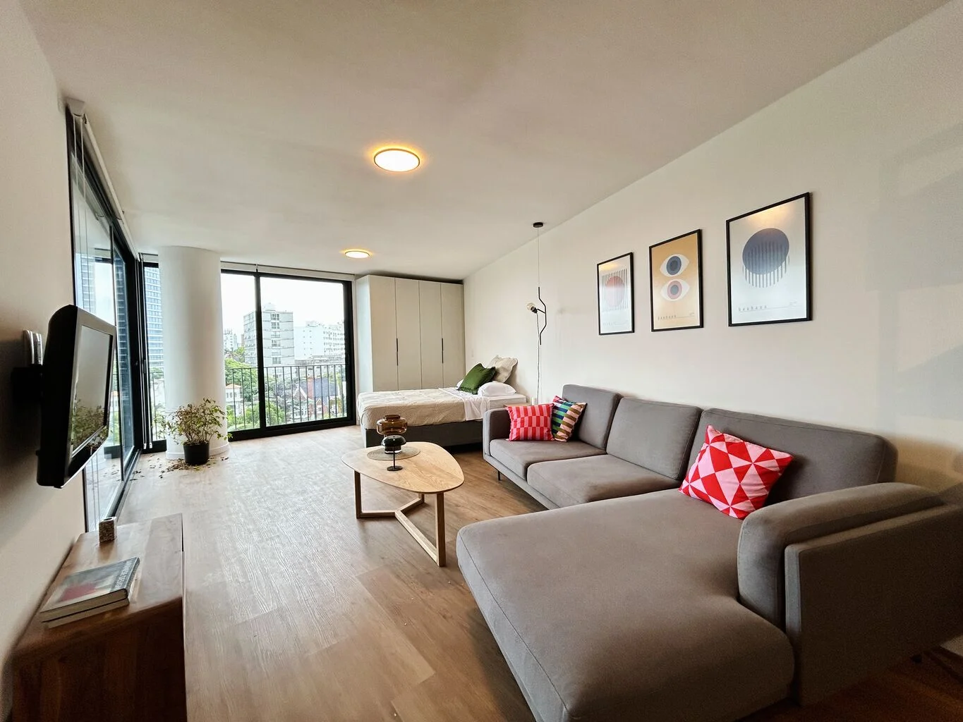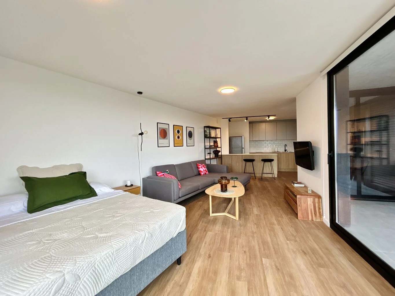 Cuenta con un amplio ambiente tipo loft, con muy buena luz natural y salida a terraza con parrillero (barbacoa).