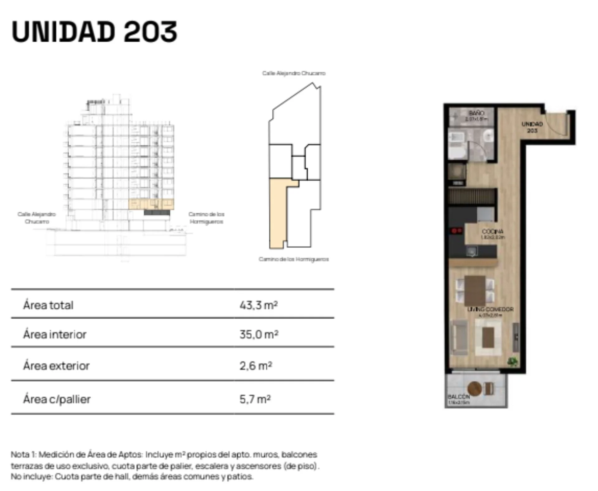Corredor Responsable: - Contacto: Andrea Goldberg Lanzamiento del edificio \\\"DEL MAR\\\", a tan solo una cuadra de la Rambla, y playa de Pocitos. En uno de los lugares con mayor cantidad de servicios, desde supermercado, farmacia, panadería, y club deportivo. Va a ser un edificio, con características particulares, ya que tendrá ambas fachadas principales, una hacia la calle Alejandro Chucarro, y la otra hacia Camino de los Hormigueros. Sera un edificio de viviendas, en tipología de monoambiente, un dormitorio, y dos dormitorios. En el último piso tendrá barbacoa con parrillero sala de ejercicios y lavadero común. La unidad es un monoambiente con balcón que da a la calle Camino de los Hormigueros. Compartimos con todos los colegas inmobiliarios Comisión inmobiliaria 3% + IVA Gastos conexión 4% Garajes disponibles por USD 27.000 Edificio construido por el arquitecto Lipatin. Cada Oficina es de propiedad, gestión y desarrollo independiente La presente publicación describe las características esenciales del inmueble, debiéndose consultar al responsable de la operación por la eventual actualización de las medidas, descripciones arquitectónicas y funcionales, servicios, impuestos, precios y demás información, cuyos valores son aproximados.