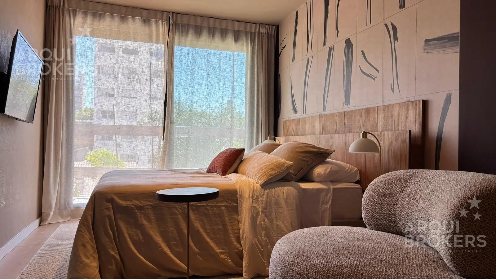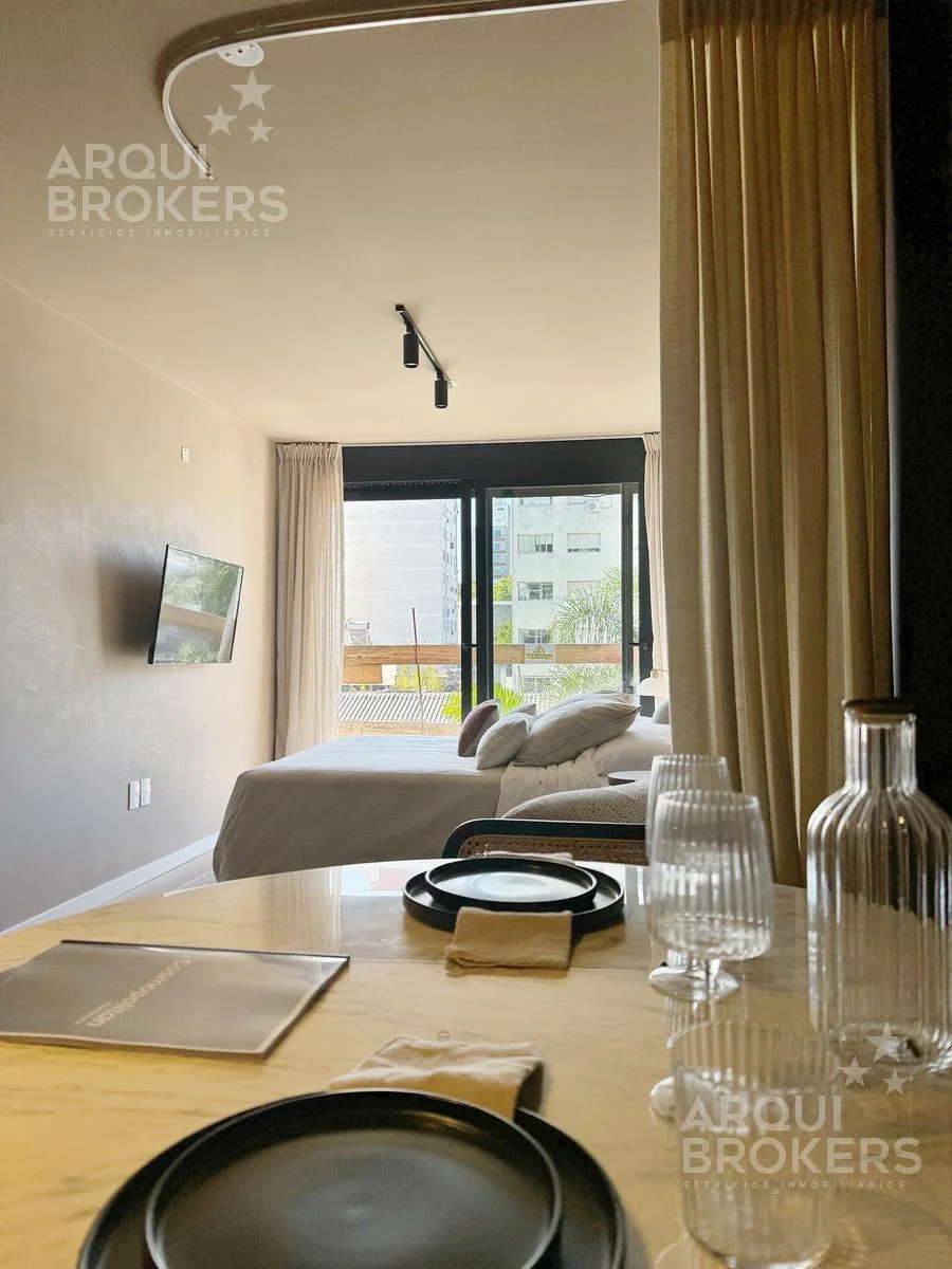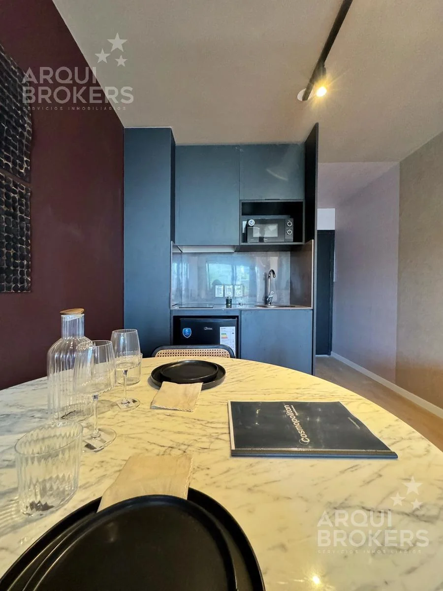Monoambiente con terraza, cocina integrada y 1 baño completo.