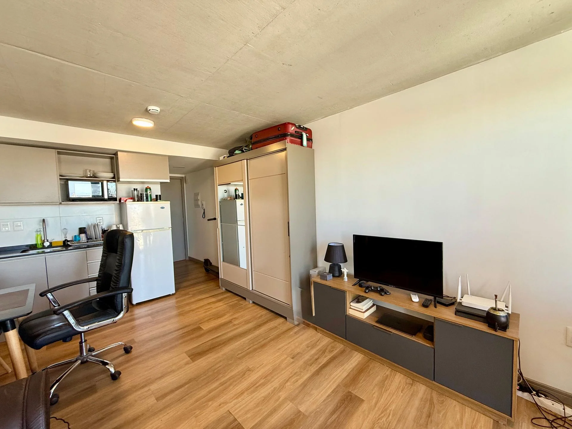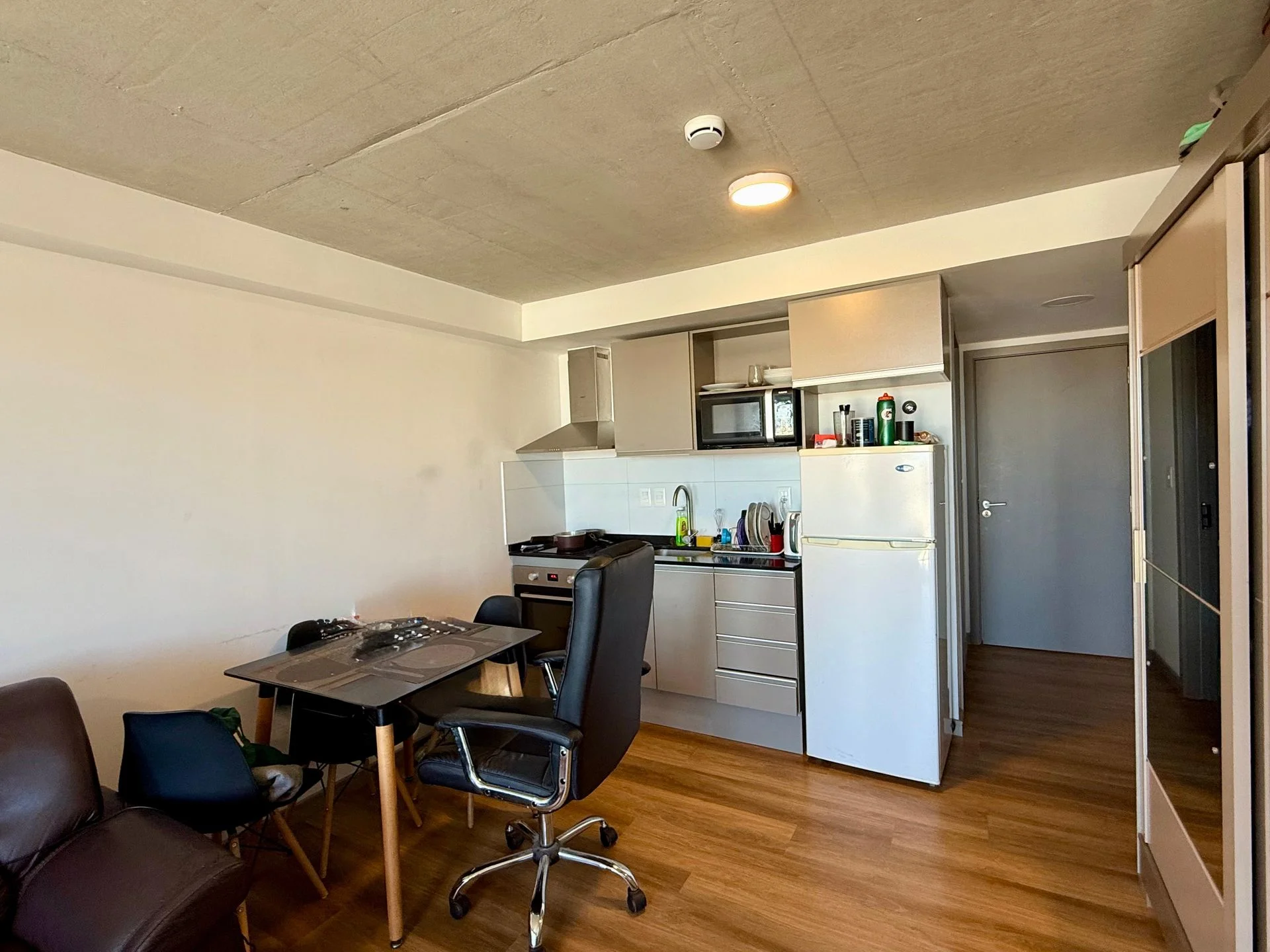 Un ambiente con salida a cómodo balcón. Se incluye horno, anafe, extractor, calefón, luminarias y aire acondicionado. Cuenta con persianas y placard.