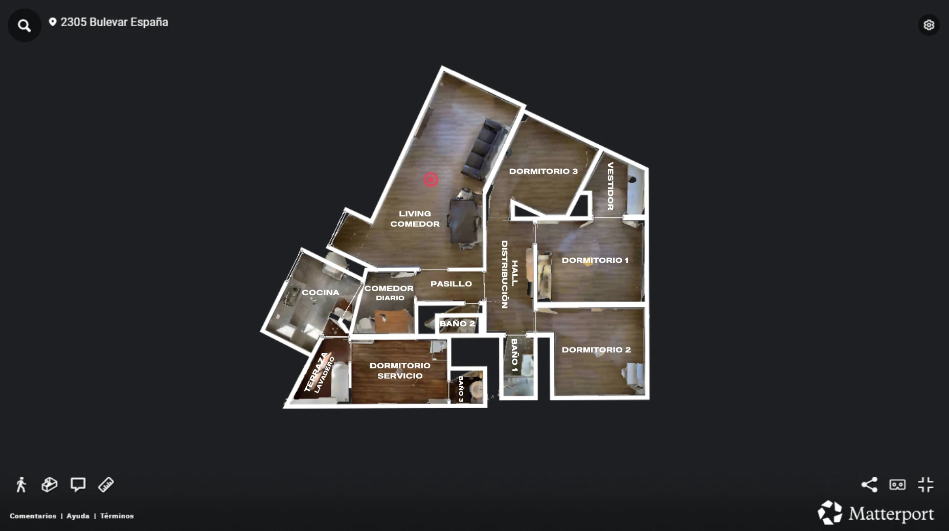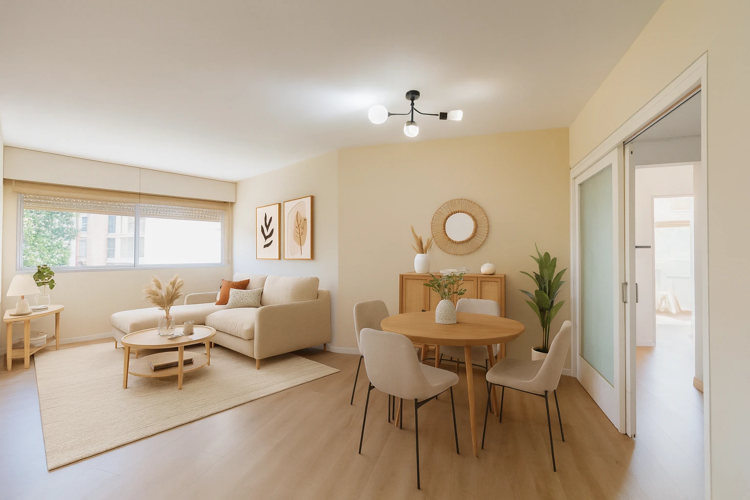 Se vende apartamento en el barrio Parque Rodó de Montevideo en la calle Bv. España a metros de Bv. Artigas, piso alto, muy luminoso. - Semipiso de 96m2 total (incluye 3m2 terraza), living comedor, 3 dormitorios (uno con vestidor y los otros dos con placares), dos baños completos, cómoda cocina con desayunador, dependencia de servicio con baño social y terraza lavadero. - El apartamento se encuentra en perfecto estado, eléctrica, cañería, pisos, paredes, techos. - Garaje amplio, compartido. - El apartamento se encuentra actualmente sin amoblar, pero las imágenes muestran una propuesta de ambientación virtual pensada para destacar su potencial y ayudar a visualizar cómo podría lucir una vez decorado. Esta representación digital busca brindar una mejor percepción de los espacios, su luminosidad y las múltiples posibilidades de diseño que ofrece el inmueble a- Gastos comunes $ 17.900 ( incluyen calefacción, portería, limpieza, agua, tarifa de saneamiento, luz de espacios comunes) b- Contribución inmobiliaria 3 cuotas $ 14.000 c- Primaria 3 cuotas de $ 3700. Acepta Banco. Interviene como agente inmobiliario OchoPuntos RealEstate. Comisión inmobiliaria 3% mas i.v.a.