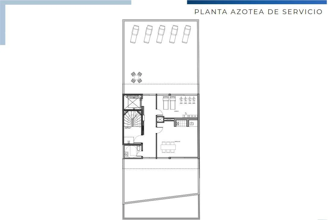 Barbacoa cerrada en último piso, equipada con parrillero y mobiliario