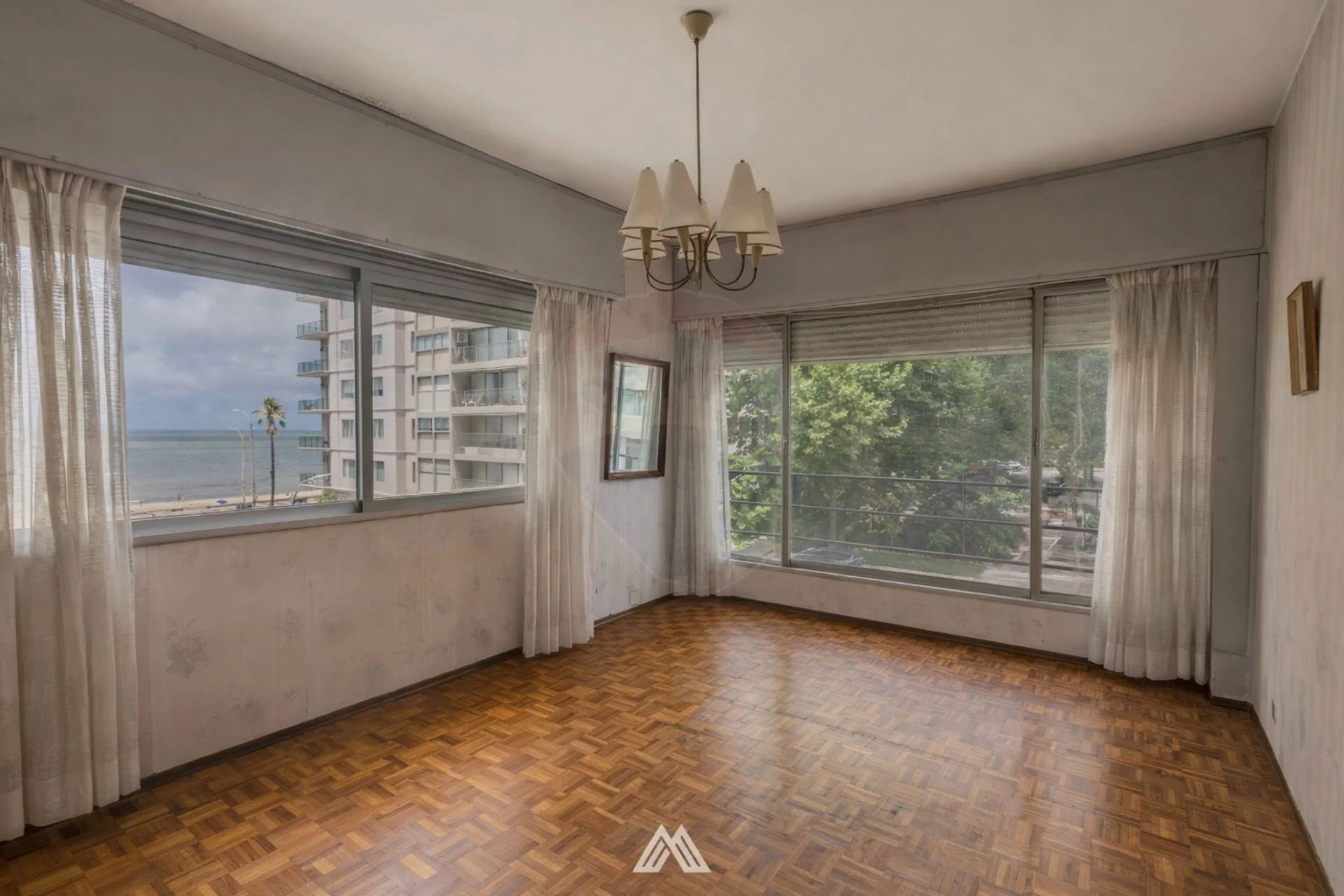 Corredor Responsable: - Contacto: Jhoan Tub Venta – Apartamento en Pocitos, a metros de la Rambla, con vista al mar. Unidad ubicada en piso 2. Un apartamento por piso. Superficie: 100 m². Se quitó el mobiliario de las primeras imágenes con el fin de mostrar con mayor claridad los espacios, la distribución y el potencial de reciclaje de la propiedad. Distribución de la propiedad: - Living comedor - Cocina definida con terraza lavadero - 3 dormitorios - Baño completo - 1 dormitorio de servicio con baño Garaje con entrada independiente y capacidad para 2 autos (1 techado y 1 sin techar) Gastos comunes: $16.000 (incluye calefacción central por bomba de calor) Contribución: 3 cuotas de $13.500 Cada Oficina es de propiedad, gestión y desarrollo independiente La presente publicación describe las características esenciales del inmueble, debiéndose consultar al responsable de la operación por la eventual actualización de las medidas, descripciones arquitectónicas y funcionales, servicios, impuestos, precios y demás información, cuyos valores son aproximados.