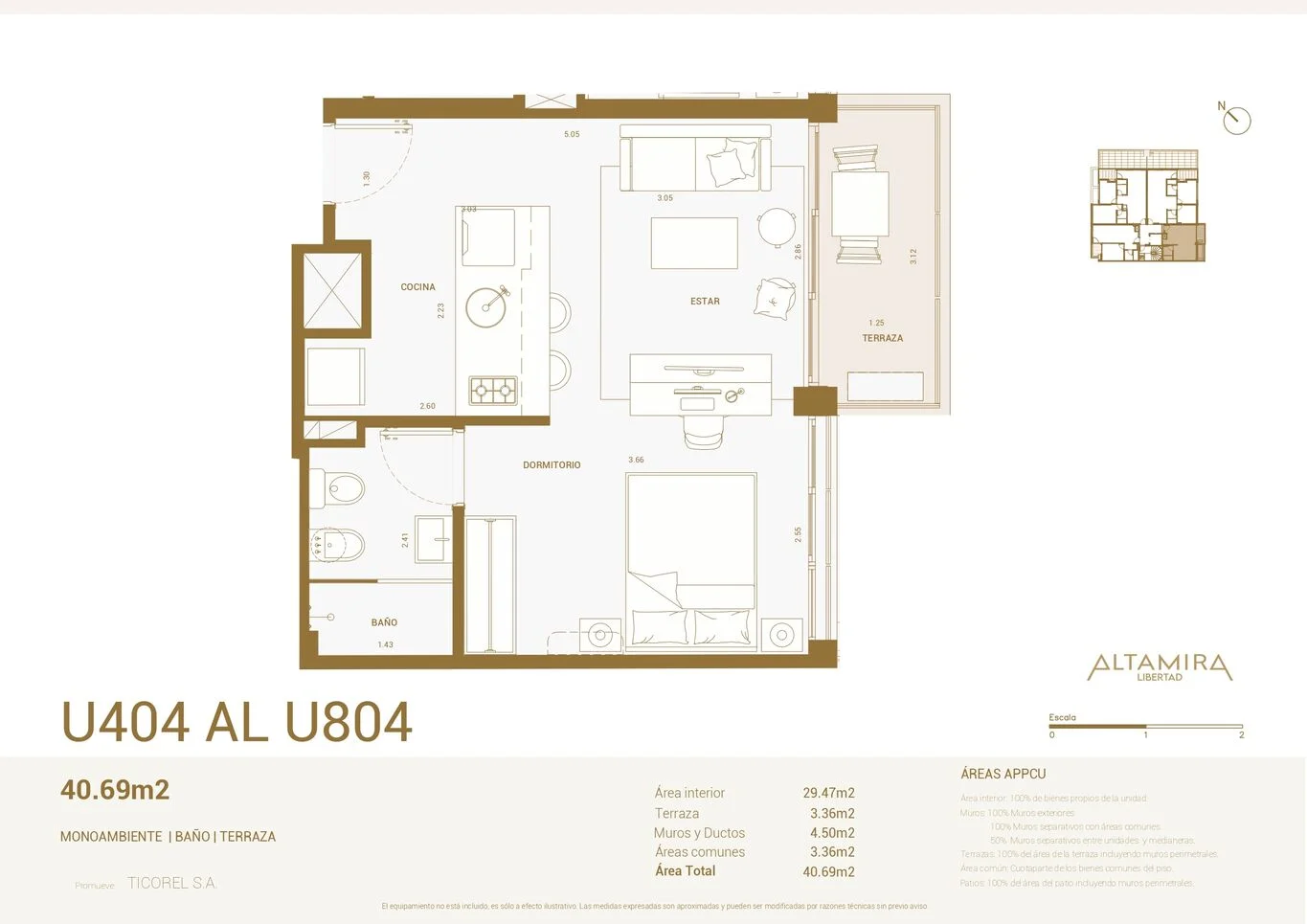 - MONO / desde Usd 137.231/ 33,8 m2 int + 5,9 m2 balcón (contrafrente) UNIDAD 704