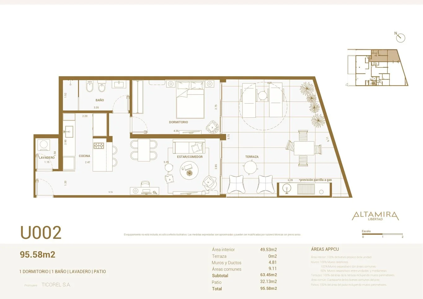 - 3 DORMS / Usd 419.645 / 93.8 m2 int + 90.5 m2 patio (contrafrente) UNIDAD 001