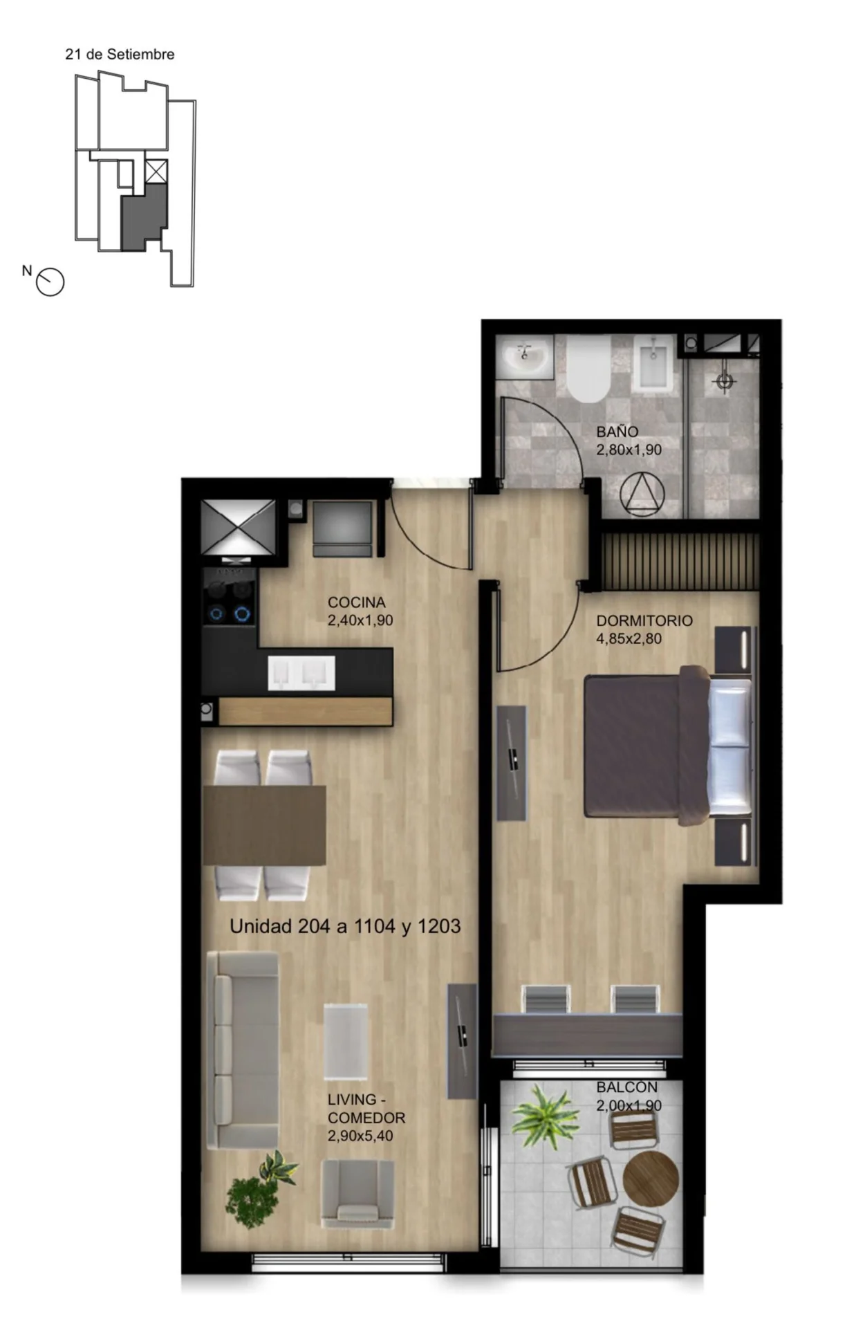 Corredor Responsable: - Contacto: Fabiana Steinberg Venta apartamento en Punta Carretas de 1 dormitorio a estrenar con garaje! Piso 4 orientado al contrafrente despejado con orientación oeste. Ubicado sobre la calle 21 de setiembre esq. Bonpland, estrena en setiembre 2025. Living comedor con salida lateral a cómodo balcón. Cocina integrada con barra y muebles sobre y bajo mesada. Pisos de madera. Dormitorio con espacio para escritorio, incluye persianas y placares. Salida al mismo balcón. Baño con conexión para lavarropas. Persianas eléctricas en living y dormitorio. GC aprox $5.000. Contará con seguridad por cámaras, barbacoa con parrillero y gimnasio. Gastos de ocupación 4%. Garaje fijo incluido en el precio. LAS FOTOS MUESTRAN AVANCE DE OBRA AL 15/8/2025. Cada Oficina es de propiedad, gestión y desarrollo independiente La presente publicación describe las características esenciales del inmueble, debiéndose consultar al responsable de la operación por la eventual actualización de las medidas, descripciones arquitectónicas y funcionales, servicios, impuestos, precios y demás información, cuyos valores son aproximados.