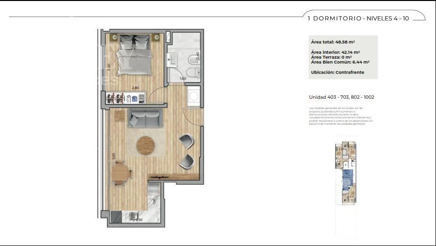 Apartamento incluye anafe, calefón, campana, extractor en baño, luminaria empotrada.