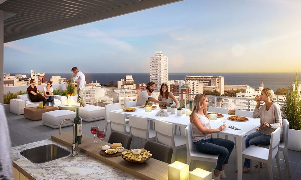 - Sky lounge con barbacoa cerrada, cocina y parrilla.