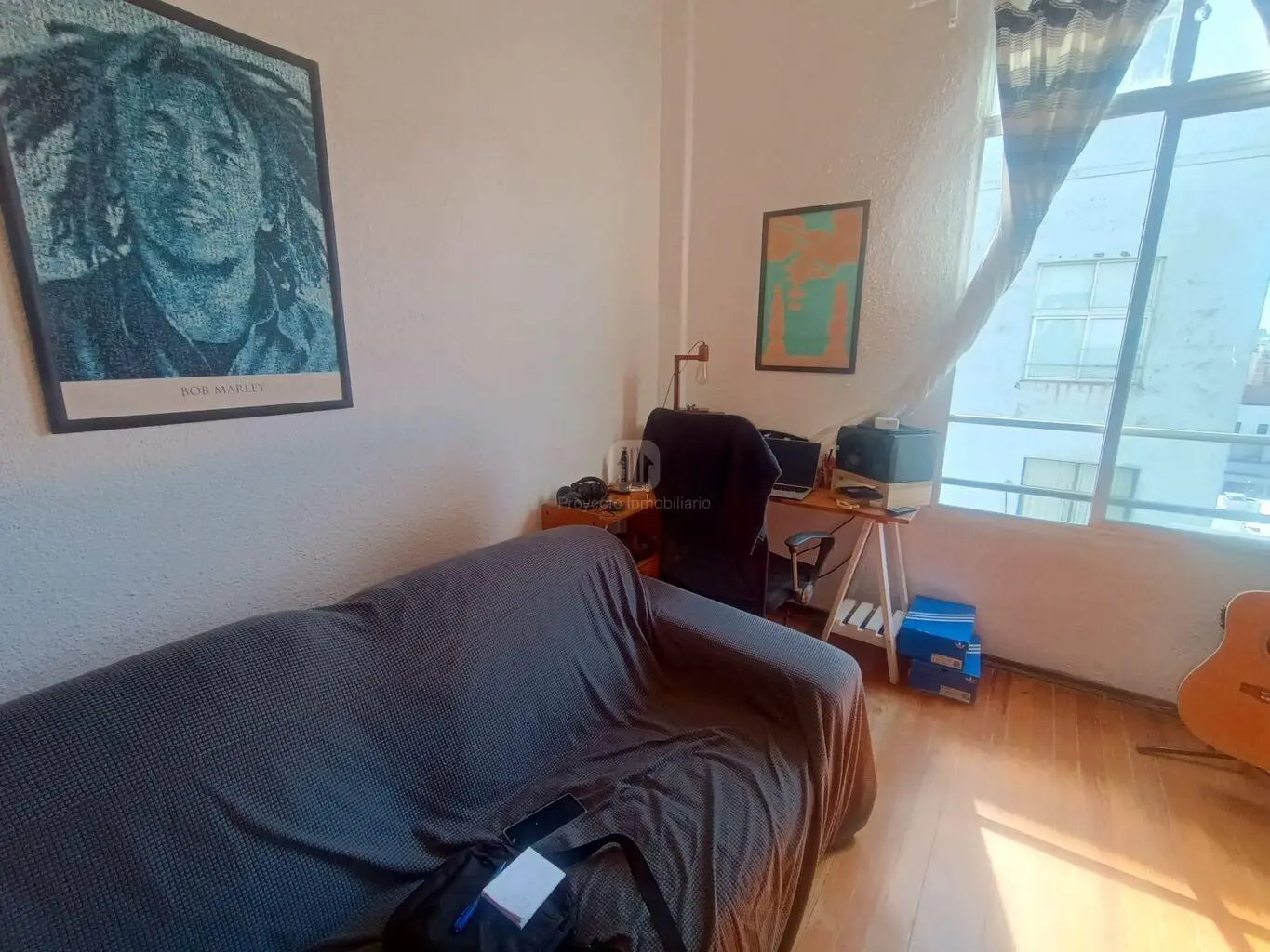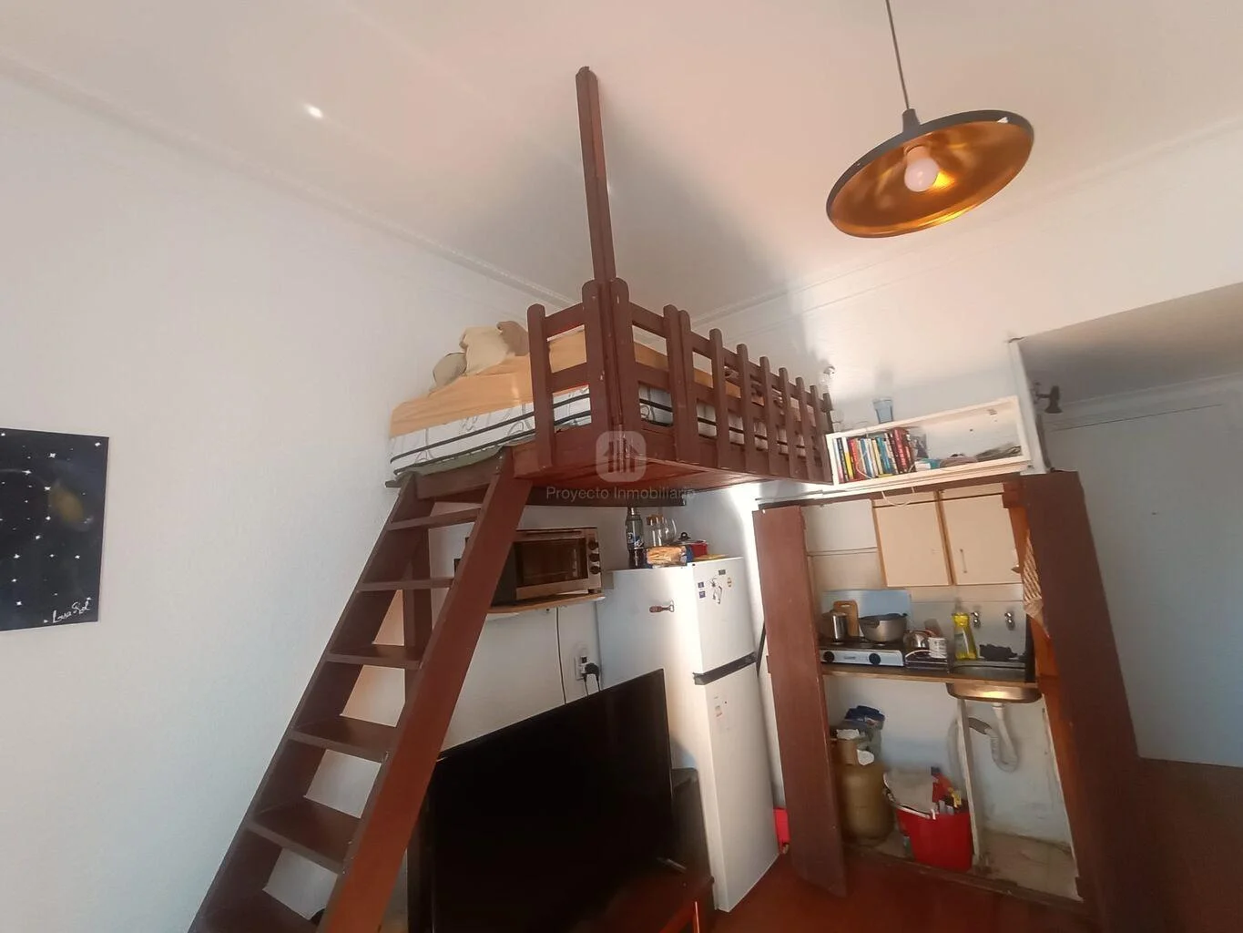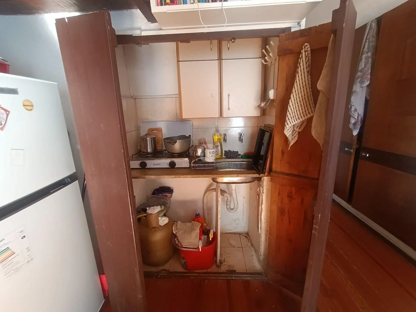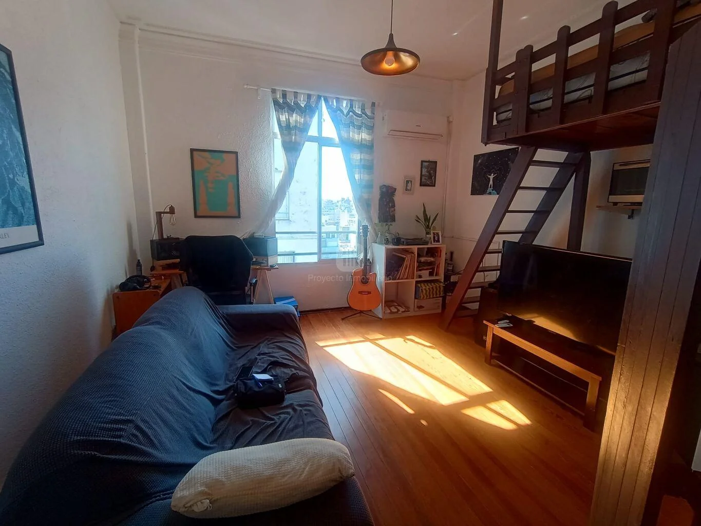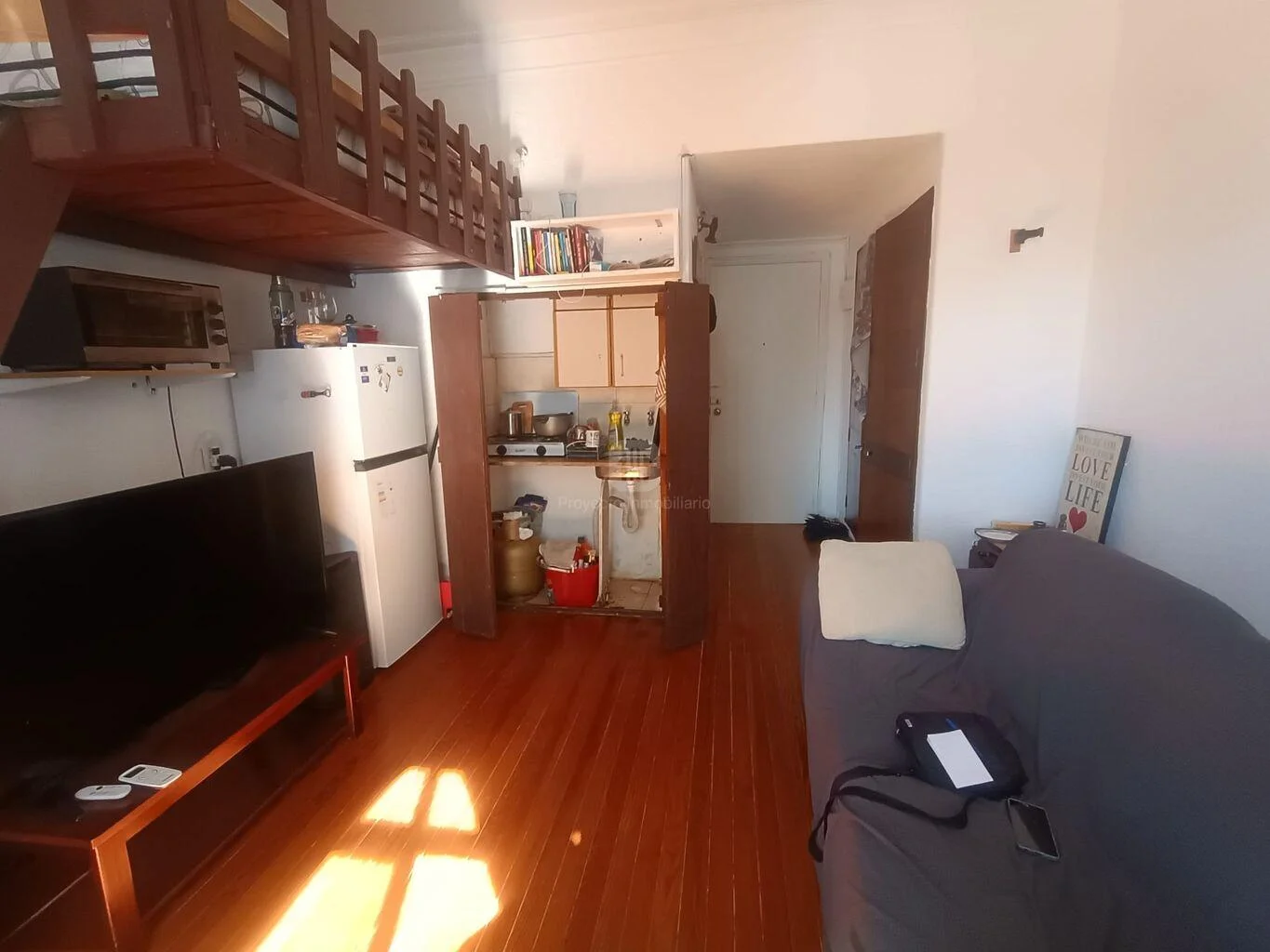 Mono ambiente con pequeña kitchenette. Baño completo,, placar, entrepiso de madera.