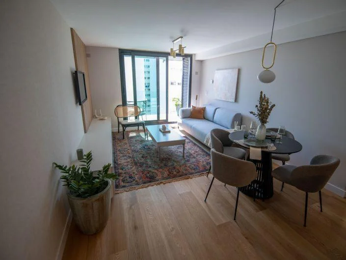 Entra a este encantador apartamento en Bilú Biarritz y descubre una sala de estar comedor que se conecta con una acogedora terraza y parrillero.
